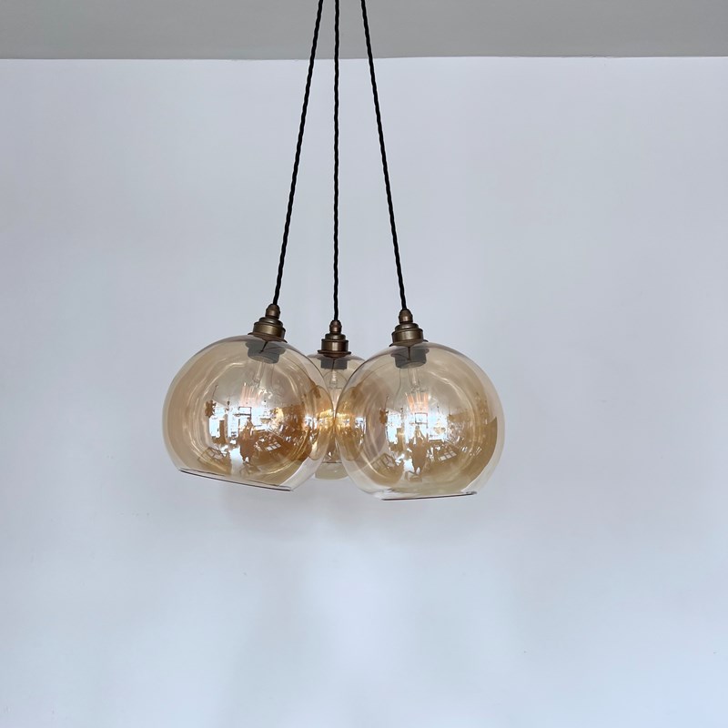 Each shade has been wired here, in Stockport, near Manchester by our small team of experts and is now ready to be installed. We recommend that they are installed by an electrician into a joist or a supporting noggin. To clean the pieces dust the brass components and flex regularly with a soft cloth. The glass shades can then be wiped with a glass wipe or a cloth that has been sprayed with glass cleaner. A final wipe with a paper towel will give a polished finish.