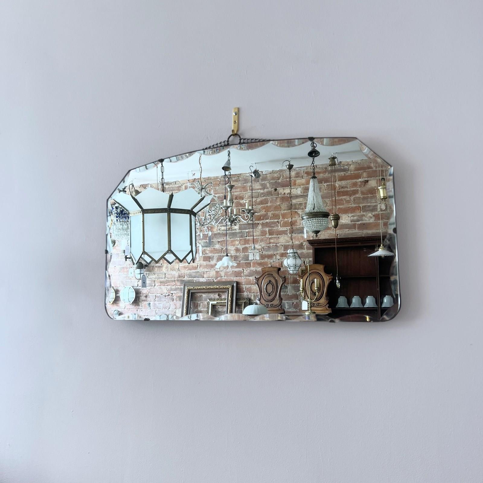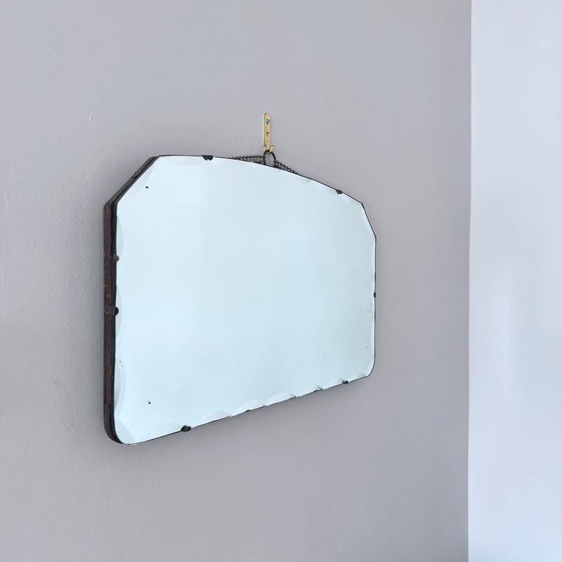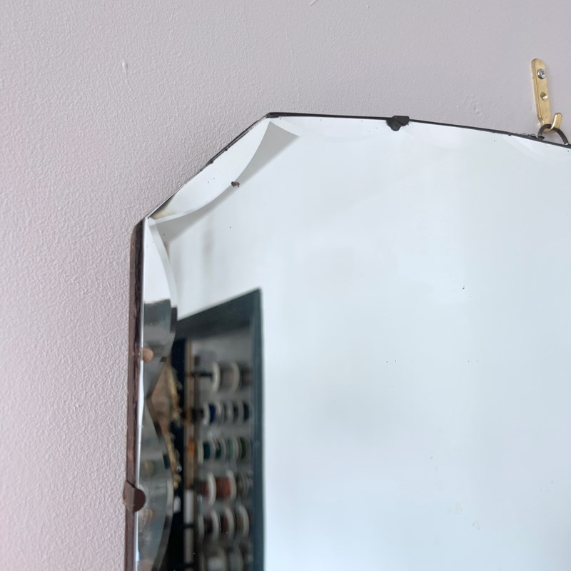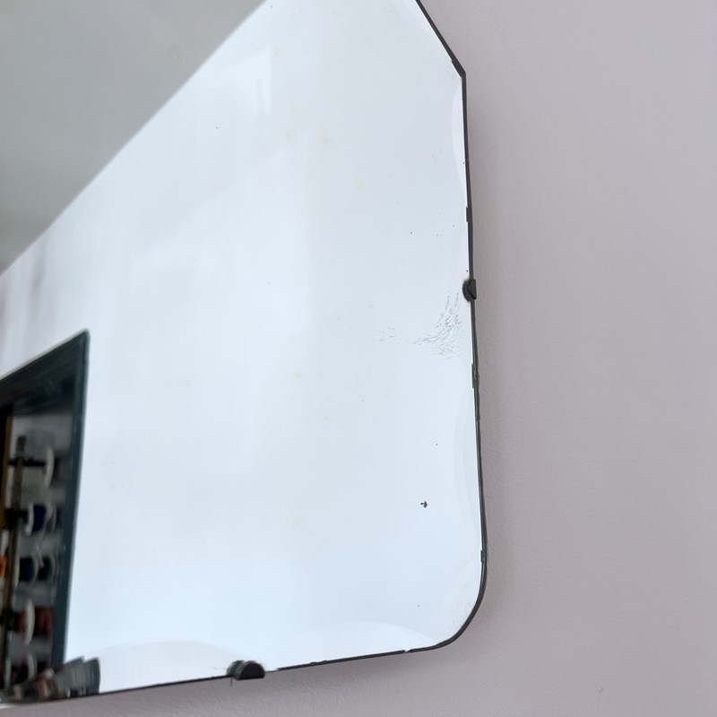 Deco bevelled edge mirror with age related foxing to the mirror.