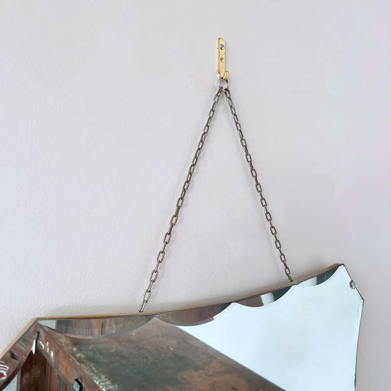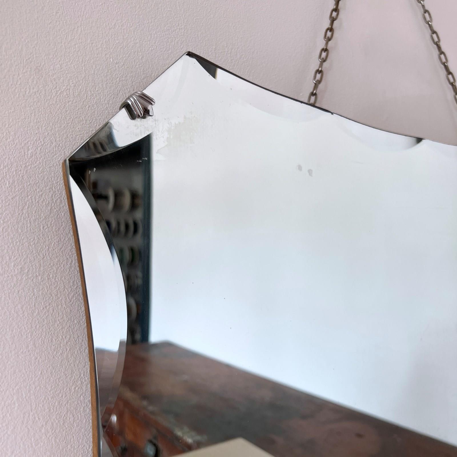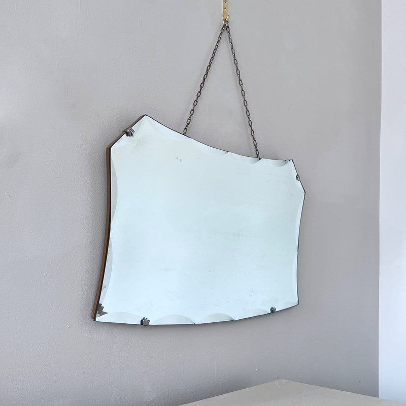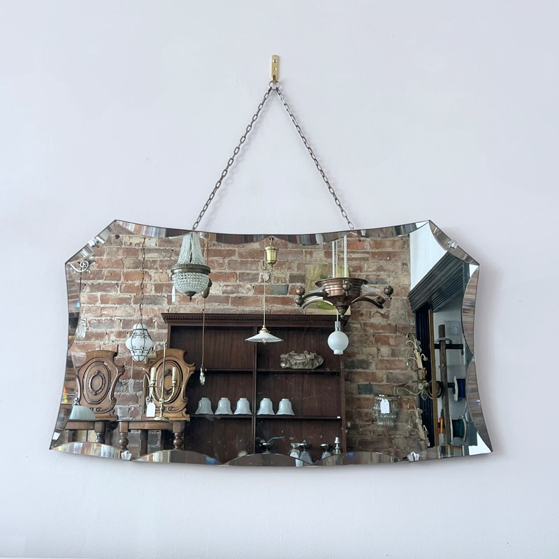 Deco bevelled edge mirror with age related foxing to the mirror.