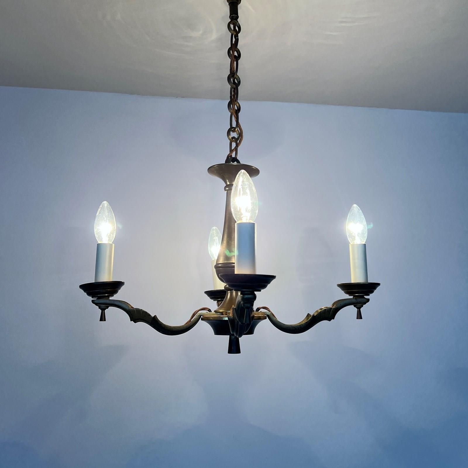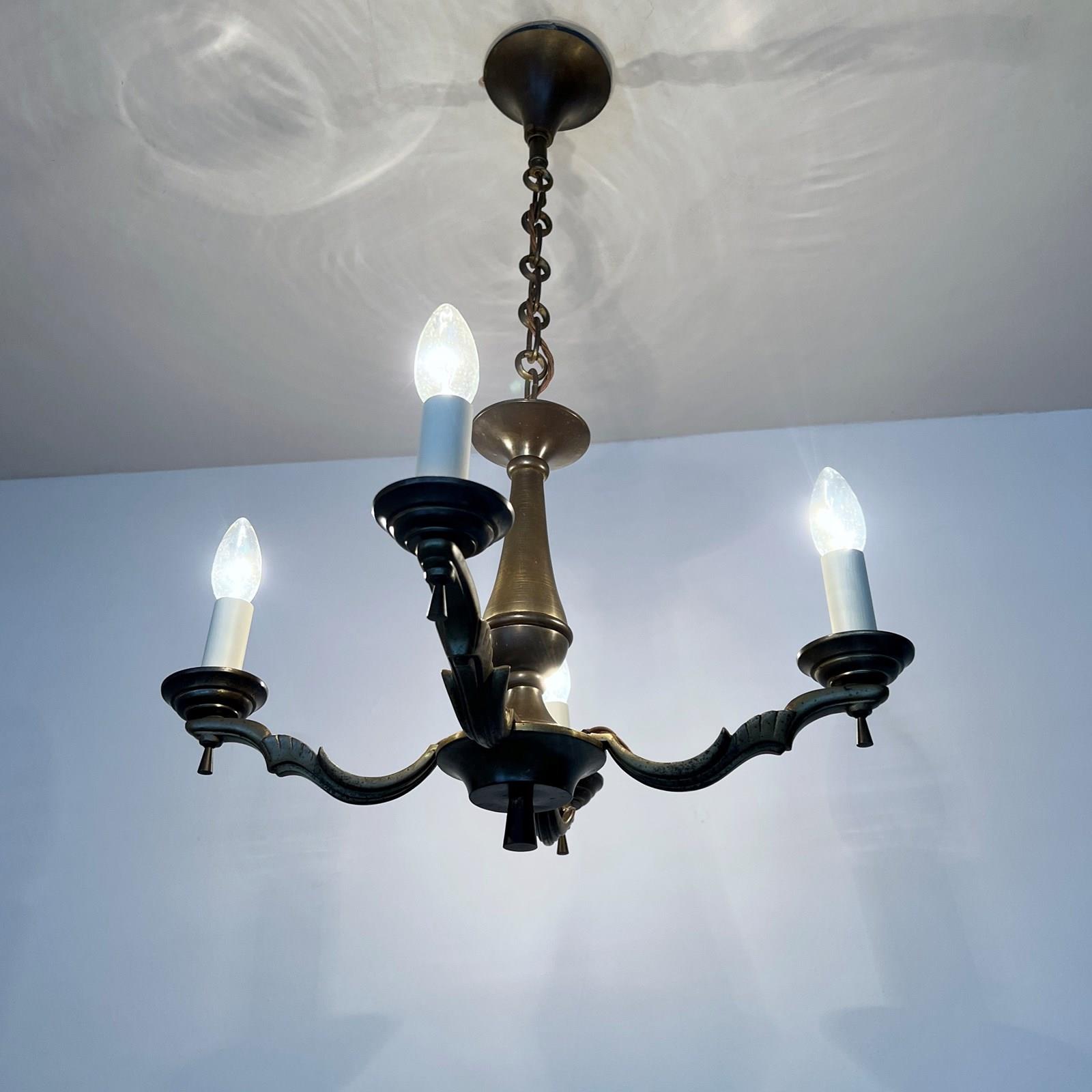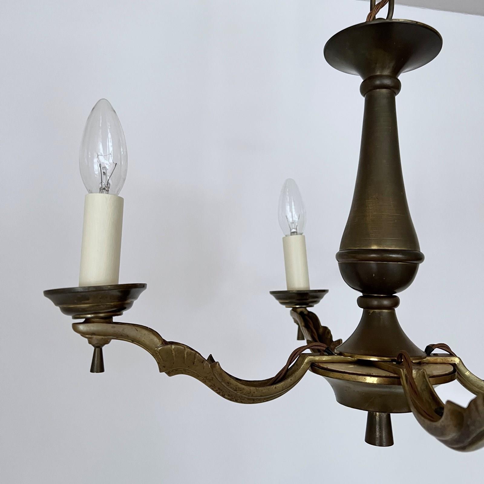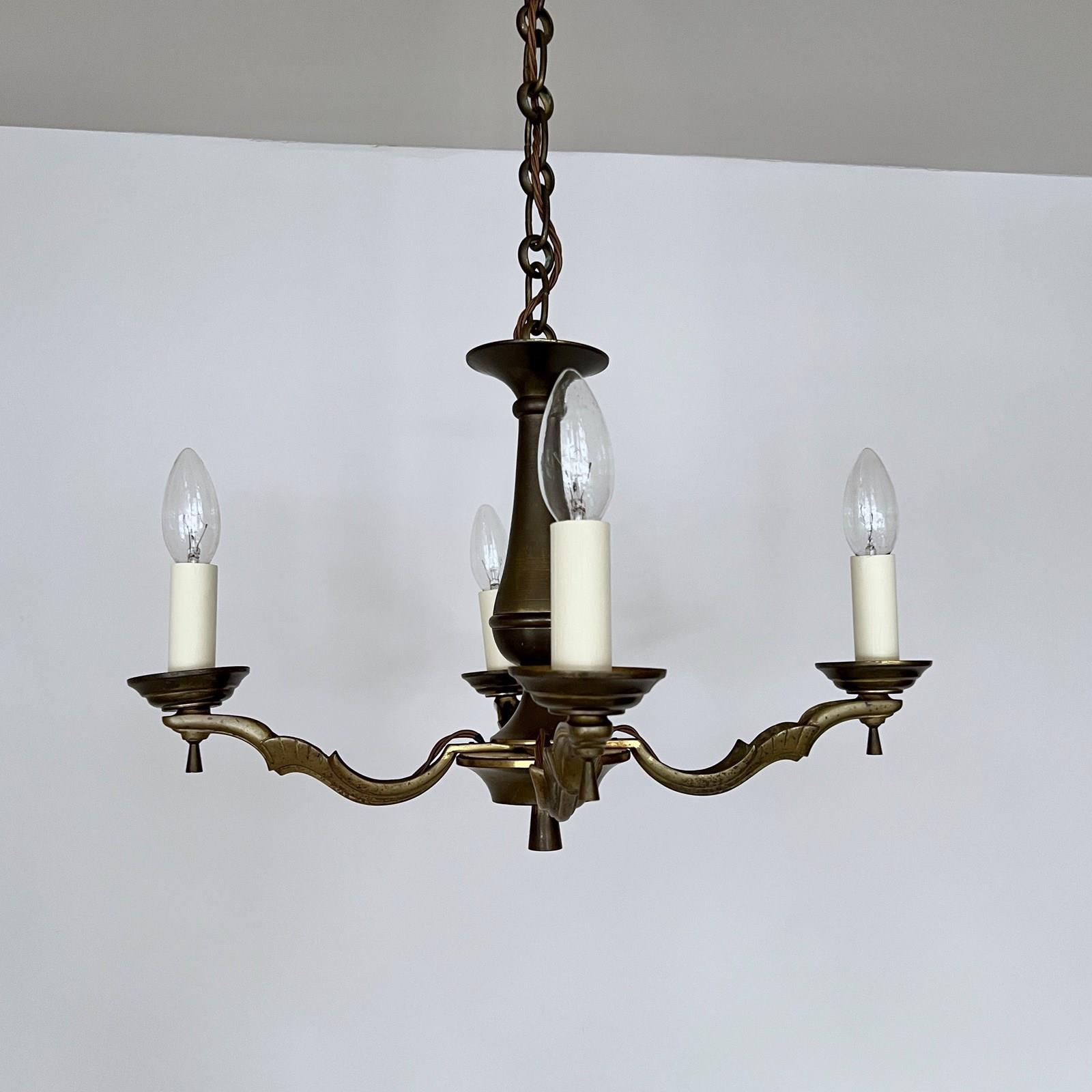 Ornate cast brass chandelier with four cast brass decorative arms. The chandelier comes supplied with braided flex, chain and a ceiling rose. Chandelier requires SES lamps, these are not included but can be supplied.