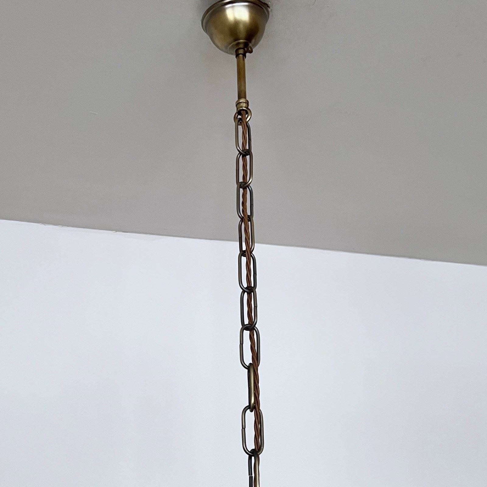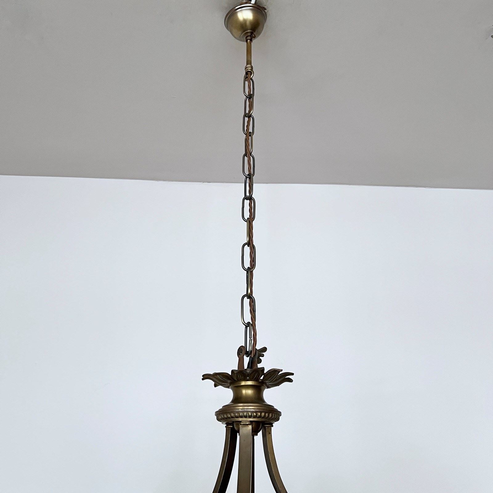 This chandelier has been fully restored and rewired here, in Stockport, near Manchester by our small team of experts and is now ready to be installed. We recommend that this balloon chandelier is installed by an electrician and into a joist or a supporting noggin. To clean the chandelier dust the frame and glass components regularly with a soft cloth. The drops can then be wiped with a glass wipe or a cloth that has been sprayed with glass cleaner. A final wipe with a paper towel will give a polished finish.