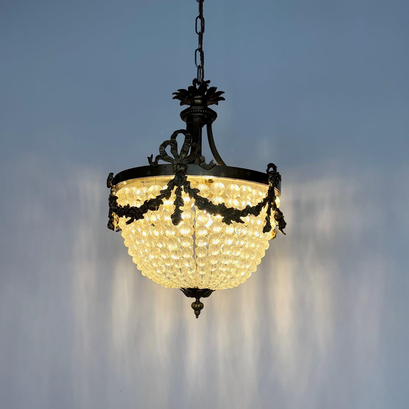 Early 20Th Century Louis XVI French Basket Chandelier