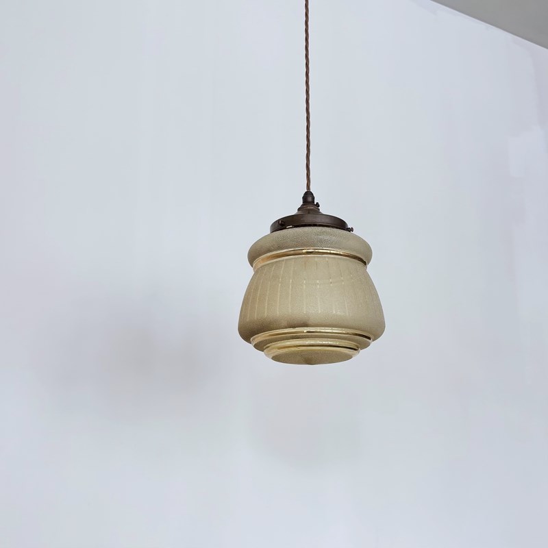 This shade has been fully rewired here, in Stockport, near Manchester by our small team of experts and is now ready to be installed. We recommend that this is installed by an electrician into a joist or a supporting noggin. To clean dust the flex and brass components regularly with a soft cloth. The glass shade can then be wiped with a glass wipe or a cloth that has been sprayed with glass cleaner. A final wipe with a paper towel will give a polished finish.