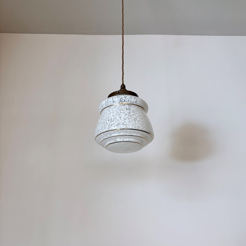 Enclosed White Mottled Glass Shade With Gold Band Details
