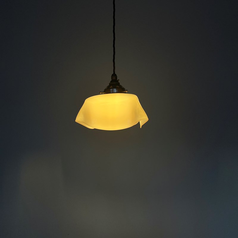 This shade has been fully rewired here, in Stockport, near Manchester by our small team of experts and is now ready to be installed. We recommend that this is installed by an electrician into a joist or a supporting noggin. To clean dust the flex and brass components regularly with a soft cloth. The glass shade can then be wiped with a glass wipe or a cloth that has been sprayed with glass cleaner. A final wipe with a paper towel will give a polished finish.