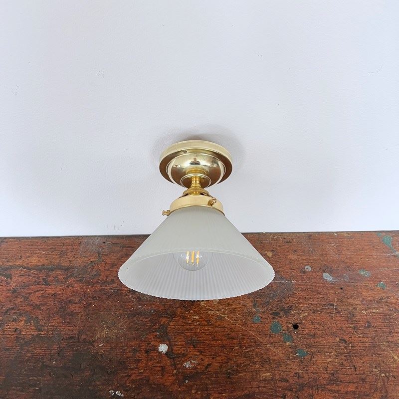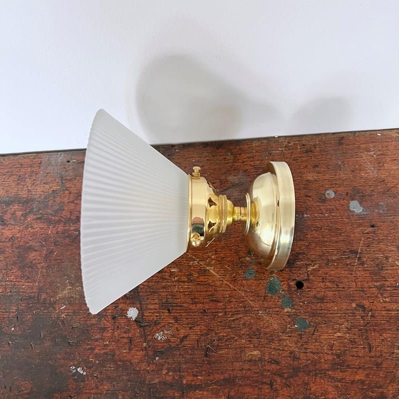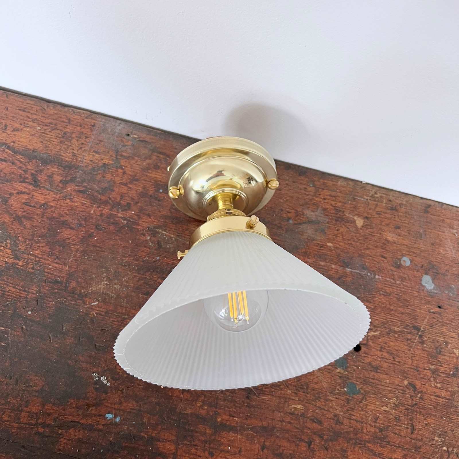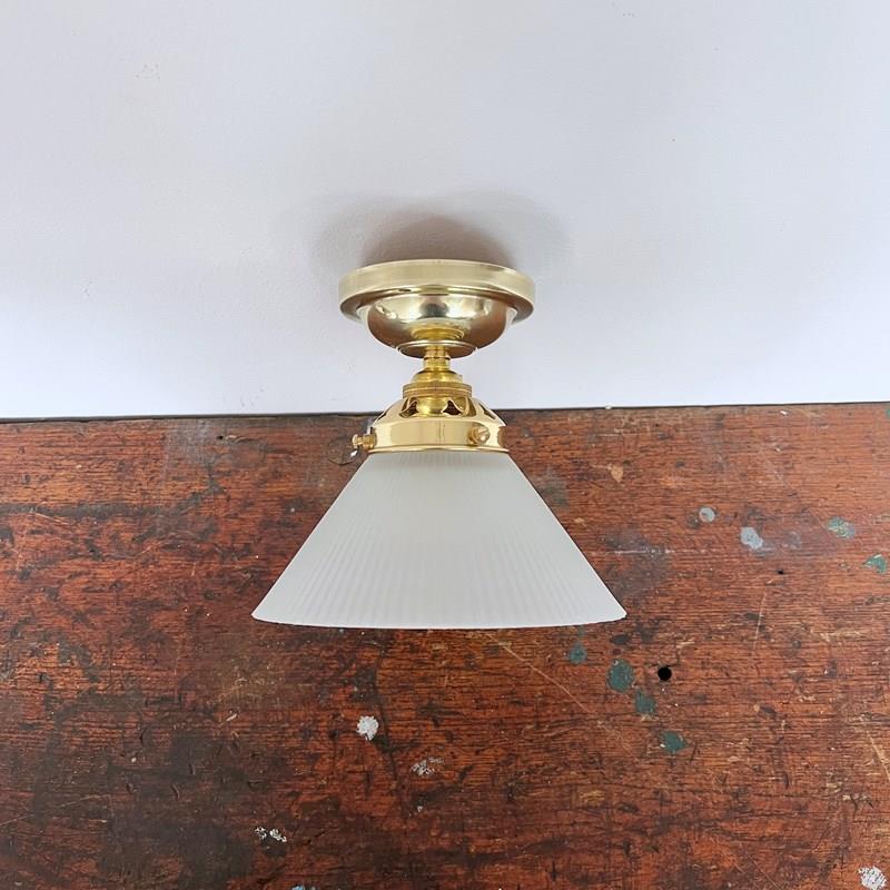 These bespoke flush fitting lights have been made using new brass parts each with a single lamp. They are made to order. These pieces are shown in polished brass finish.