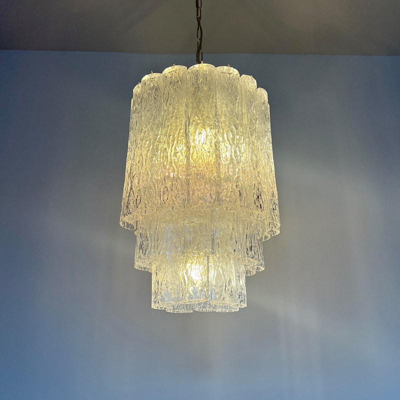 Italian Mid Century Murano Glass Chandelier, Tronchi By Toni Zuccheri For Venini