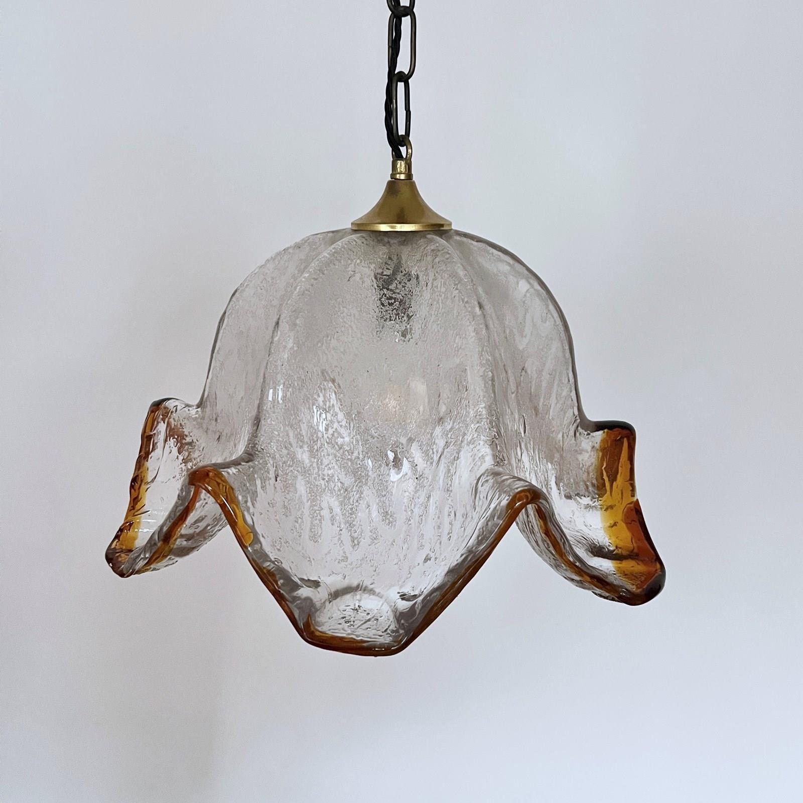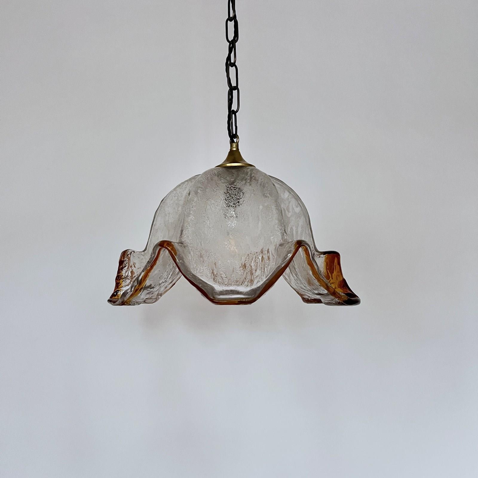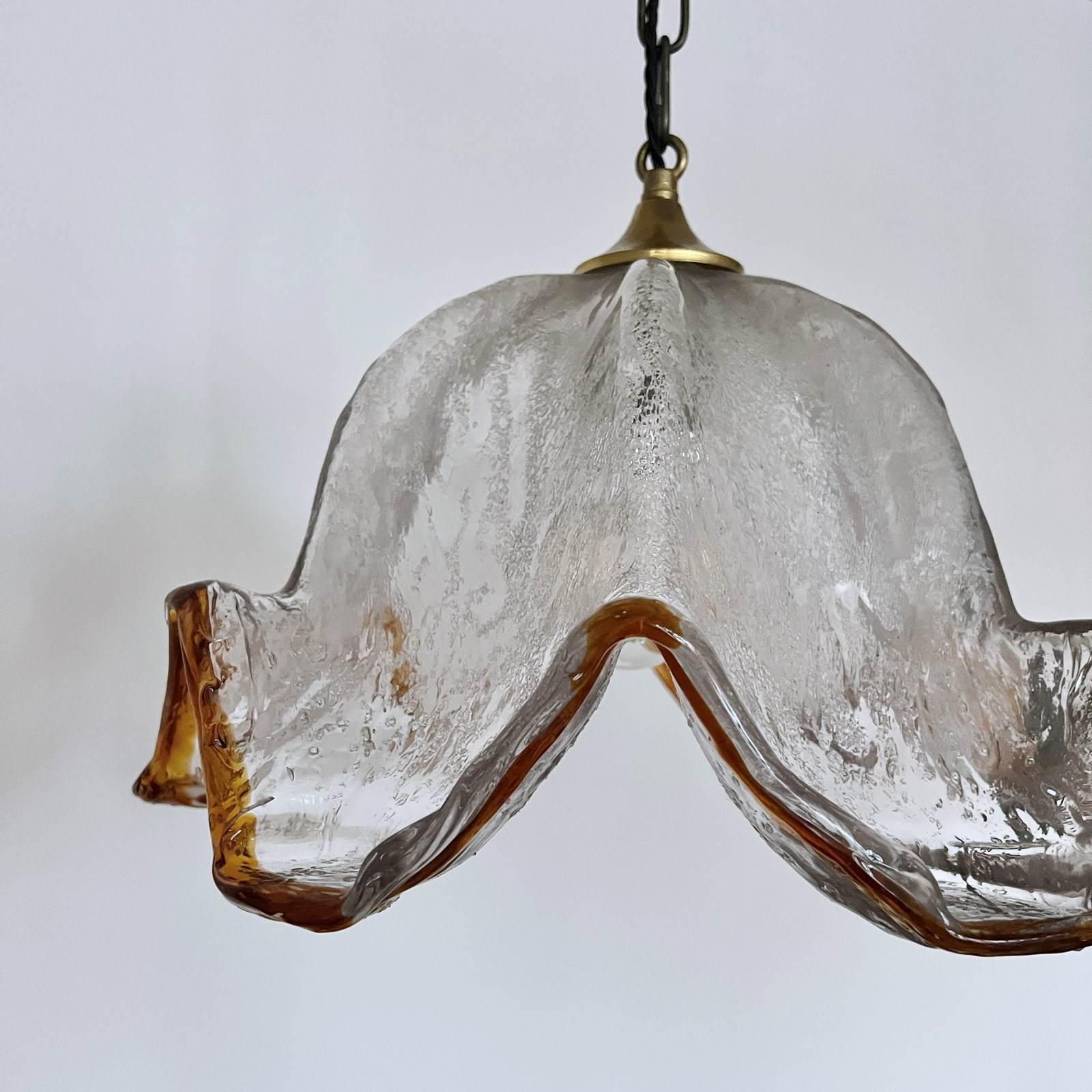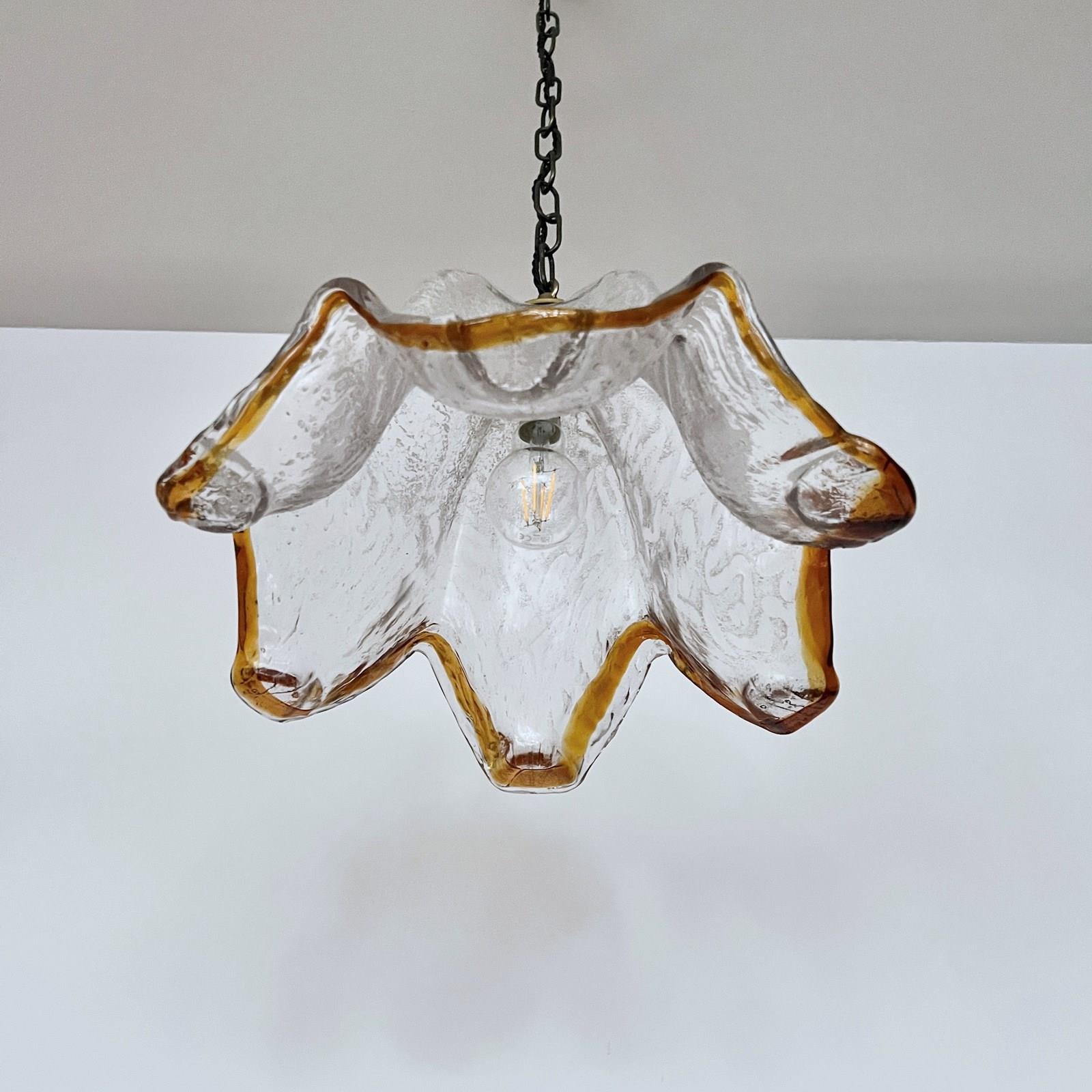 Beautiful Murano glass shade made in Italy by Murano for Mazzega. Clear fluted glass with Amber glass drip design. in perfect vintage condition.