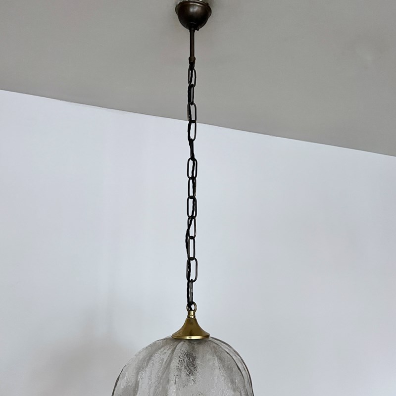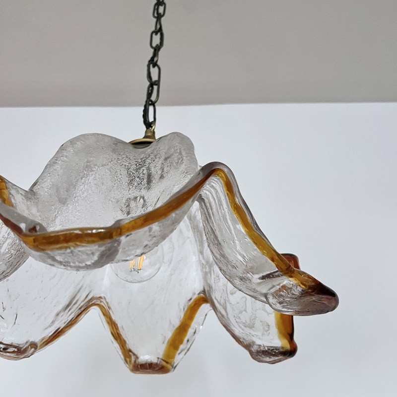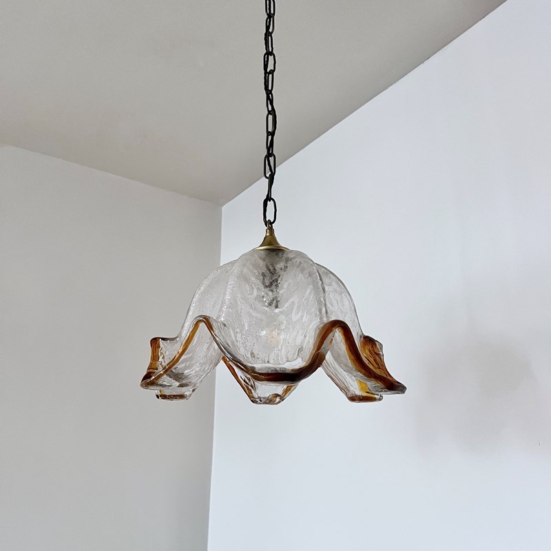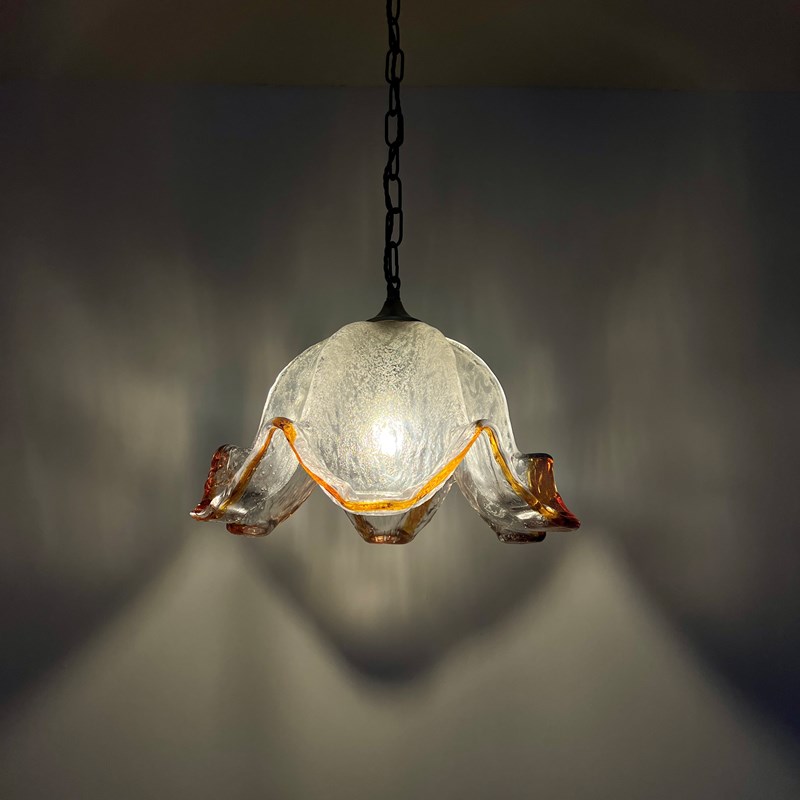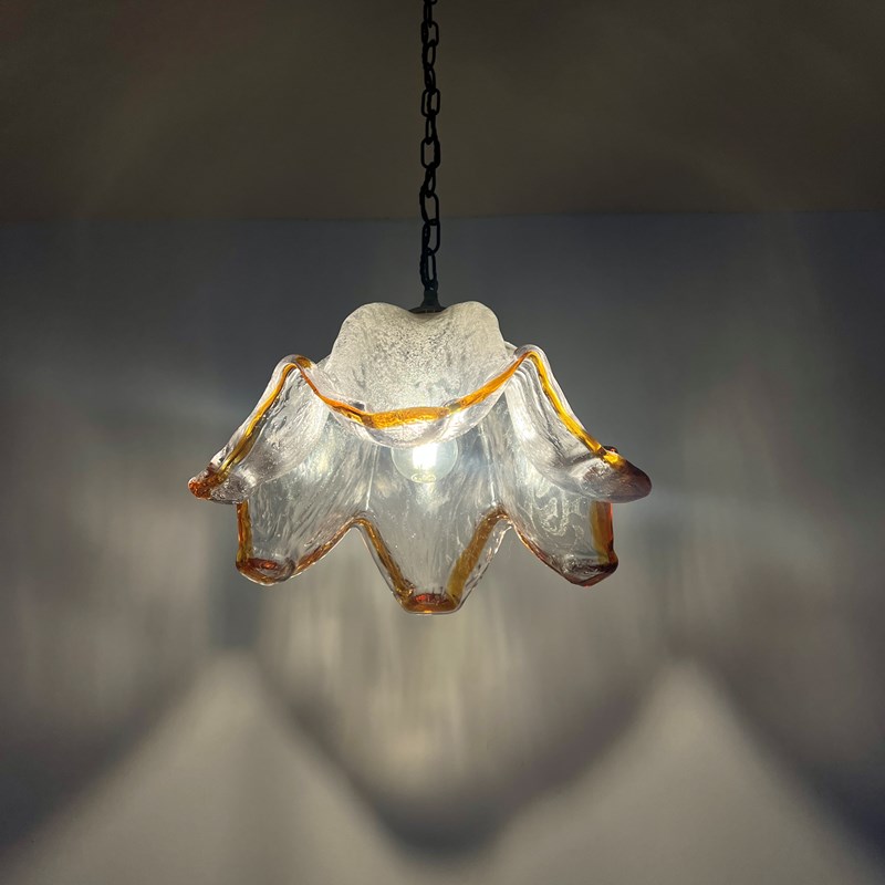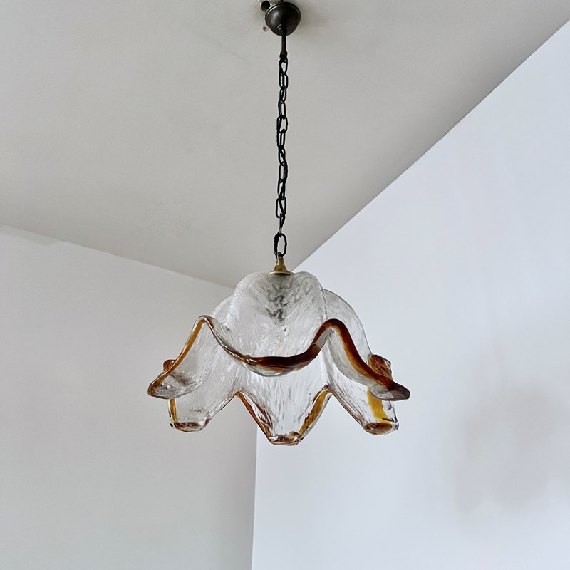Beautiful Murano glass shade made in Italy by Murano for Mazzega. Clear fluted glass with Amber glass drip design. in perfect vintage condition.