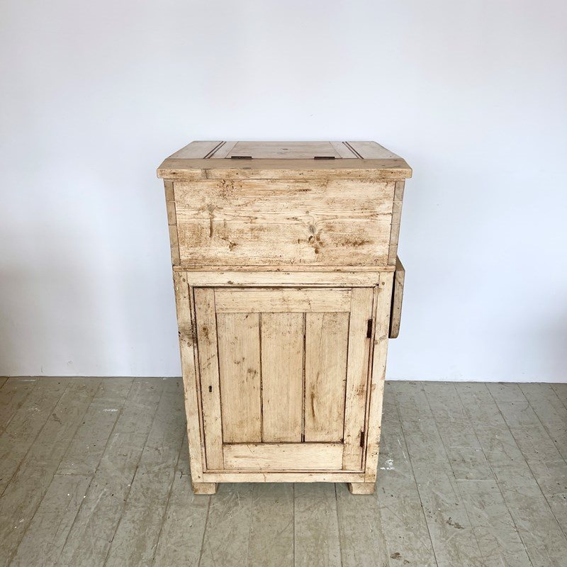 Late 19th Century pine school lectern from The Merchant Taylors’ School, Liverpool. Founded in 1620. The piece is in great antique condition. Featuring a lift up lid, side table with support and cupboard with shelves.
