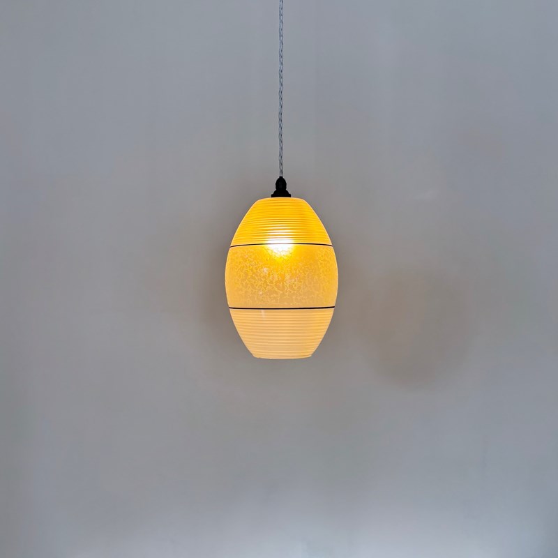 This shade has been fully rewired here, in Stockport, near Manchester by our small team of experts and is now ready to be installed. We recommend that this is installed by an electrician into a joist or a supporting noggin. To clean dust the flex and brass components regularly with a soft cloth. The glass shade can then be wiped with a glass wipe or a cloth that has been sprayed with glass cleaner. A final wipe with a paper towel will give a polished finish.