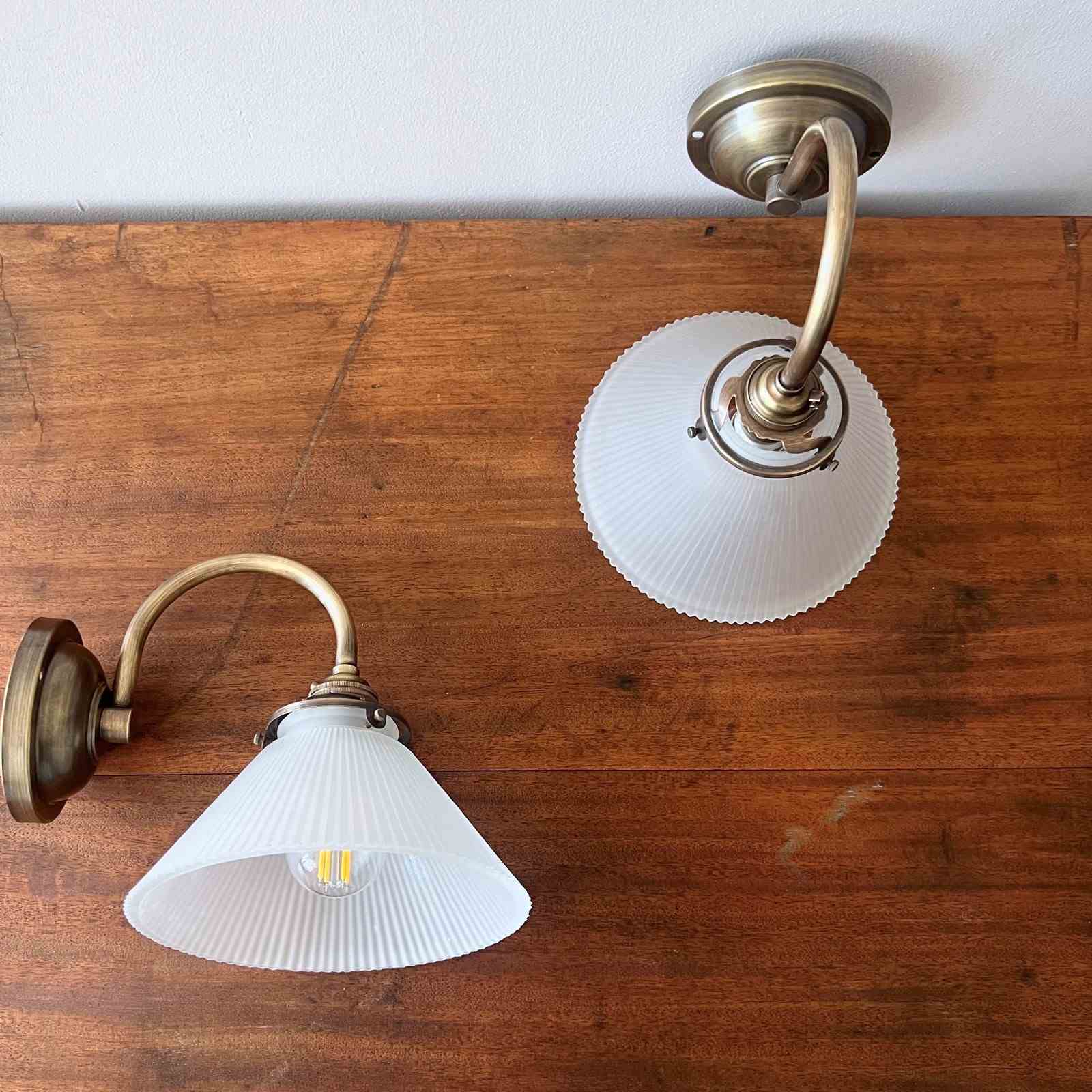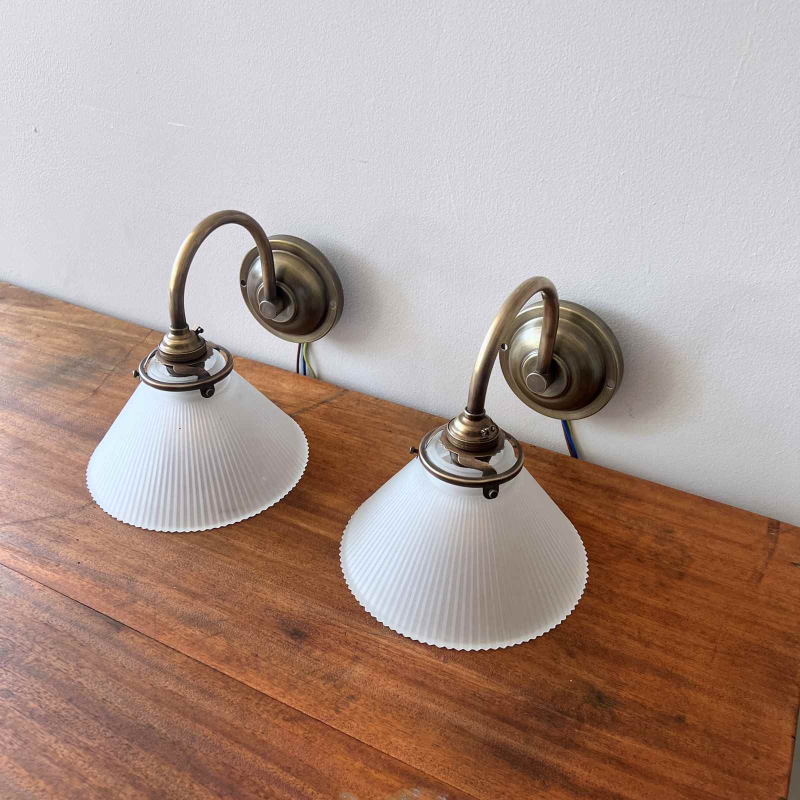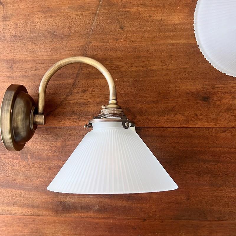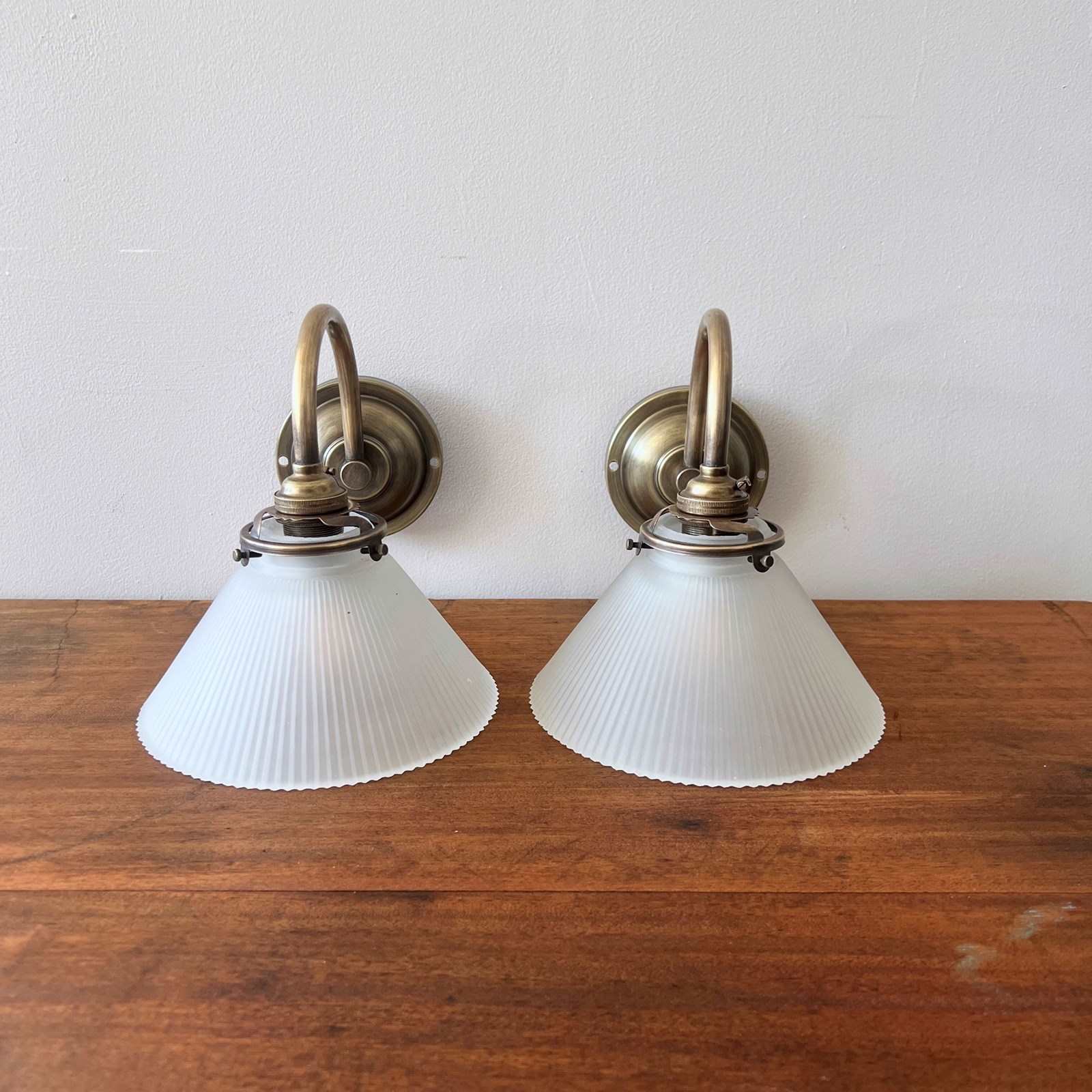 Newly Made Brushed Brass Wall Lights With Frosted Conical Shades
