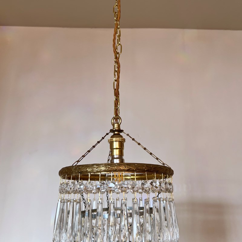 These chandelier have been fully restored and rewired here in Stockport, near Manchester by our small team of professionals and are now ready to be installed. We recommend that they are installed by an electrician. To clean the chandeliers dust the brass frame regularly with a soft cloth. The glass droppers can then be wiped with a glass cleaner wipe or a cloth that has been sprayed with glass cleaner. A final wipe with a paper towel will give a polished finish.
