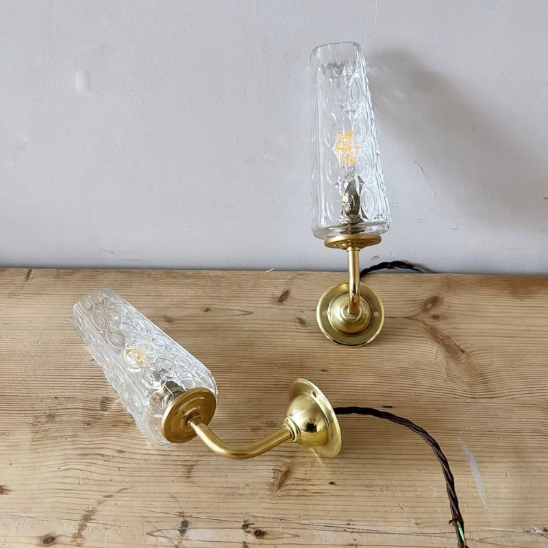 Wired here, in Stockport, near Manchester by our small team of experts and now ready to be installed. We recommend that they are installed by an electrician. Matching brass screws are supplied. Each wall light requires a b15 lamp. These are not included.