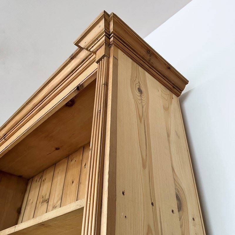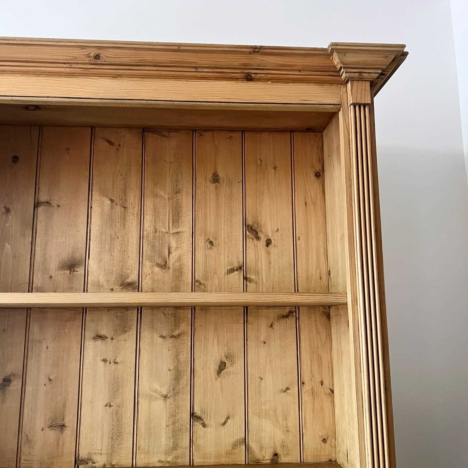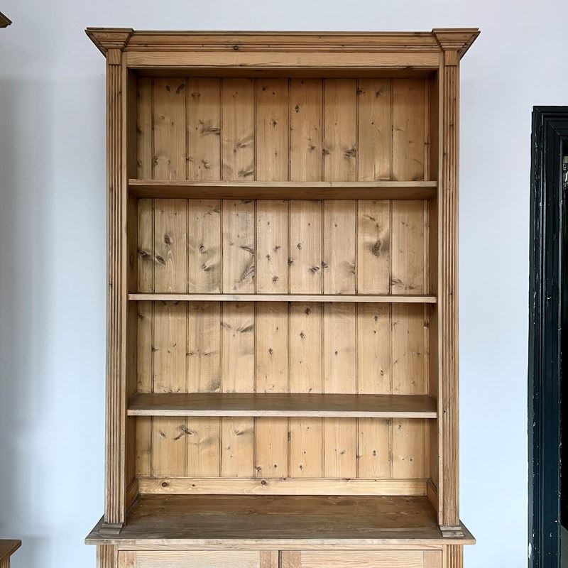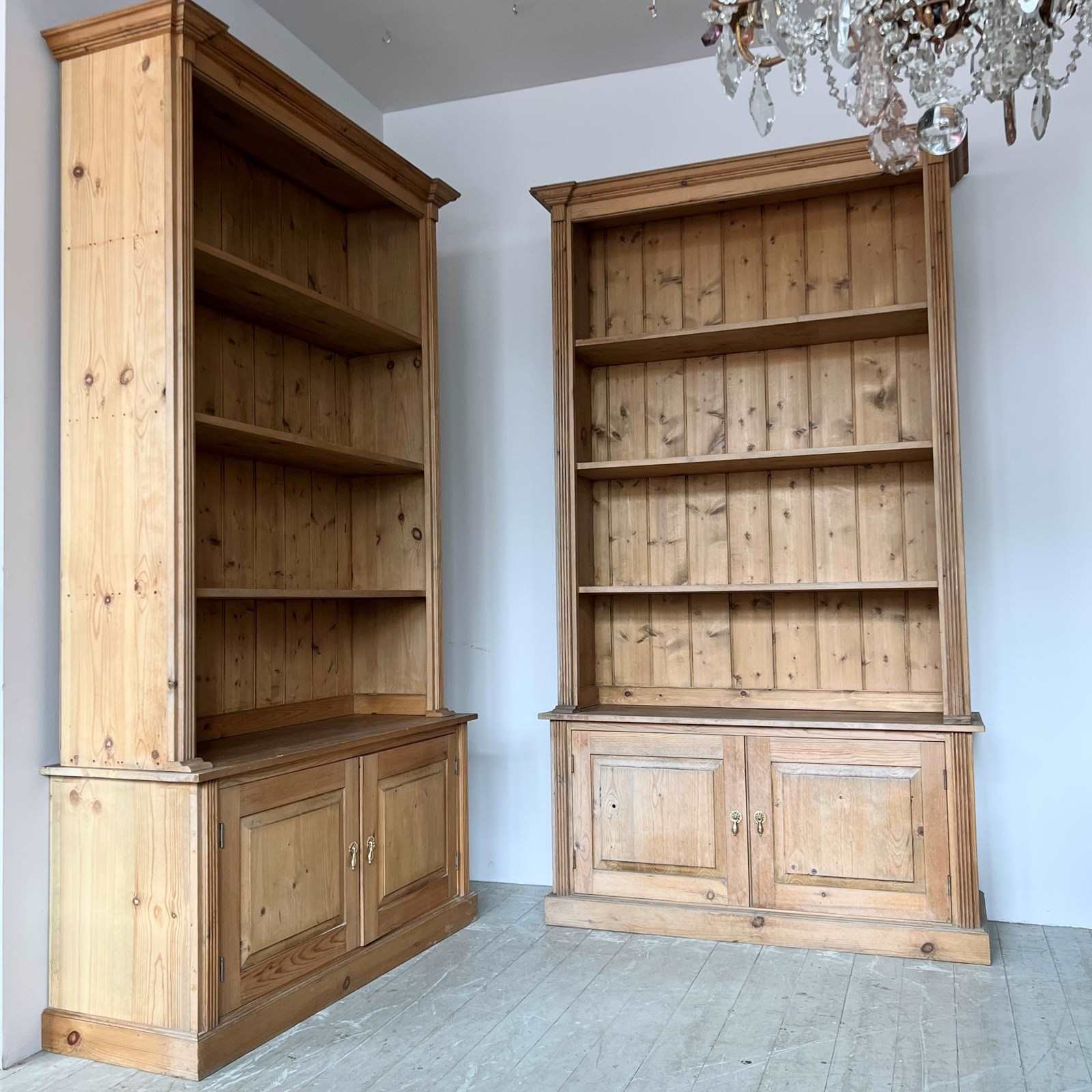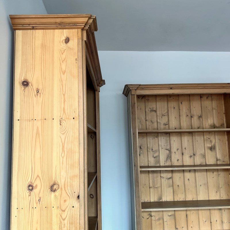 Large pine dressers. Could be painted or rewaxed. Painting will be an additonal cost. The dressers can be purchased together or separately. Three shelves in each with pot cupboard base.