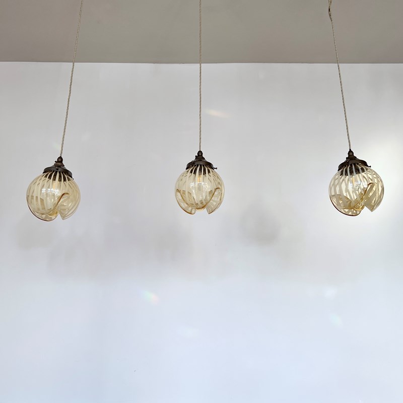 Set Of Three Amber Murano Glass Shades