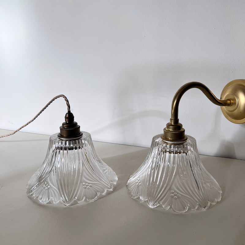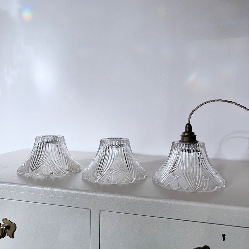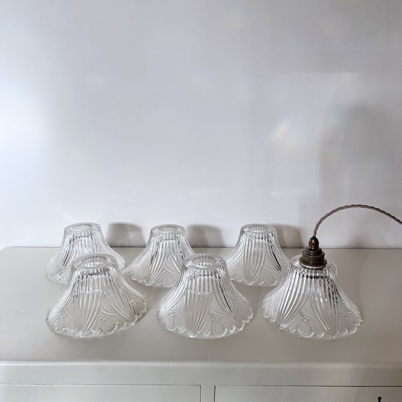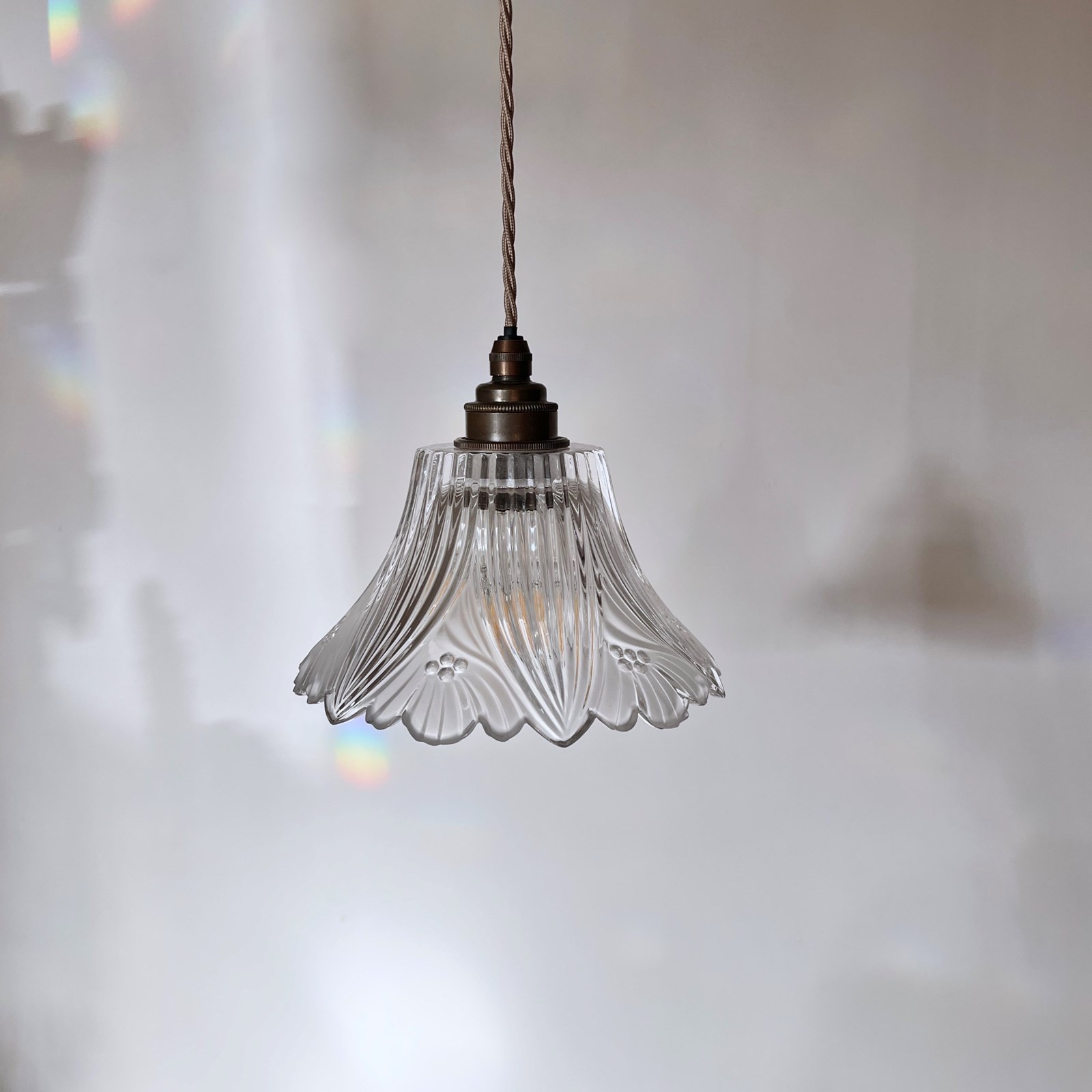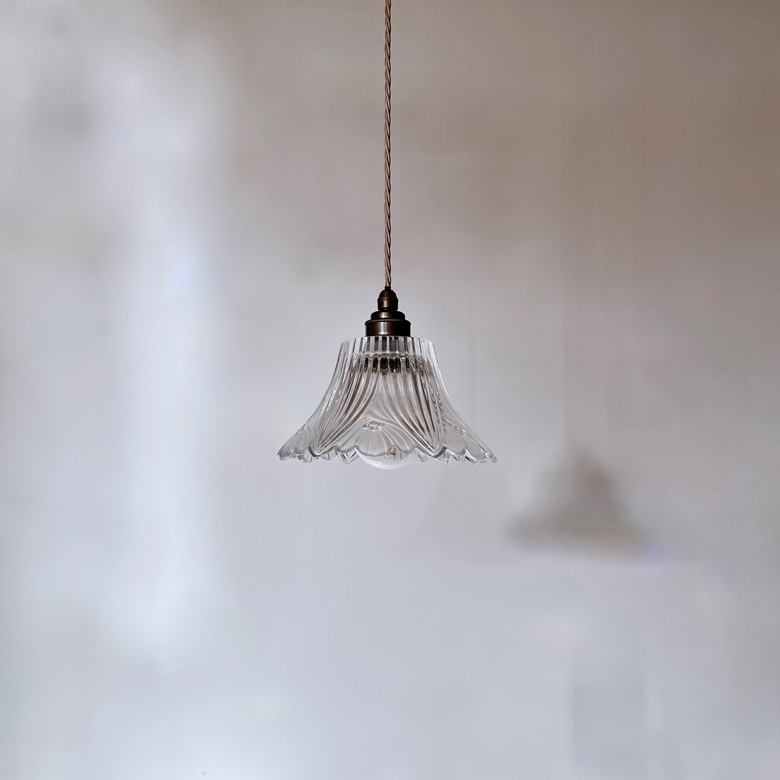 These shades have been fully rewired here, in Stockport, near Manchester by our small team of experts and are now ready to be installed. We recommend that they are installed by an electrician into a joist or a supporting noggin. To clean dust the flex and brass components regularly with a soft cloth. The glass shade can then be wiped with a glass wipe or a cloth that has been sprayed with glass cleaner. A final wipe with a paper towel will give a polished finish.