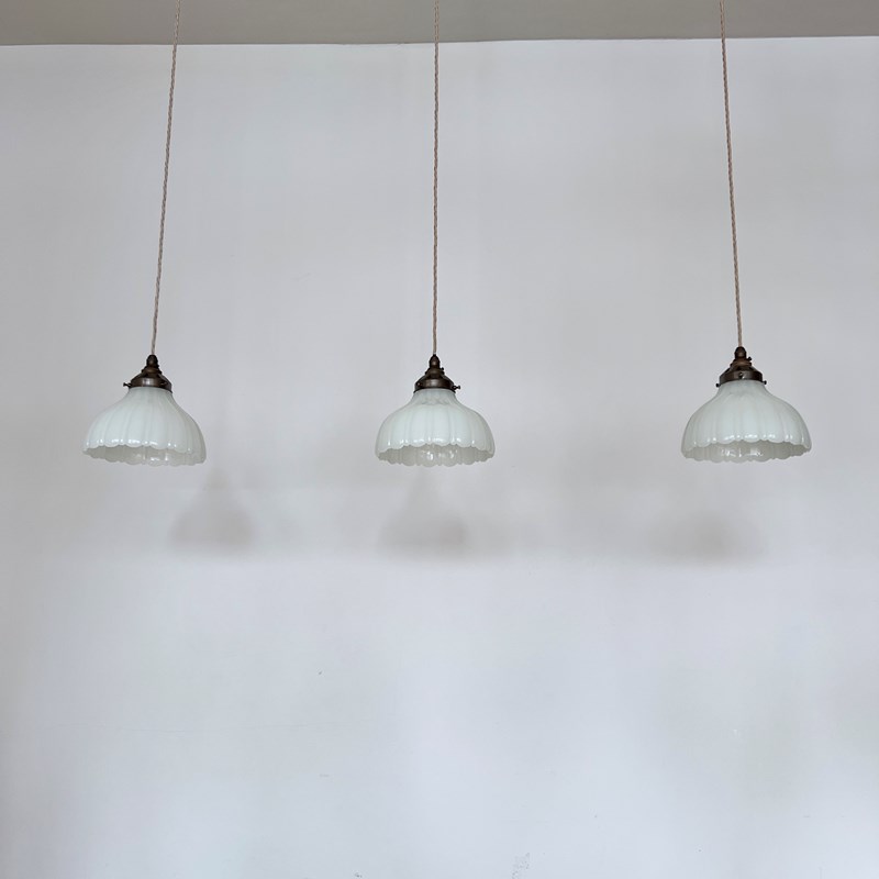 Set Of Three Jefferson Moonstone Glass Shades