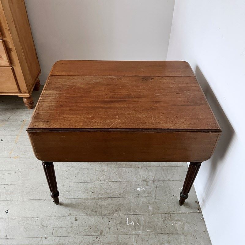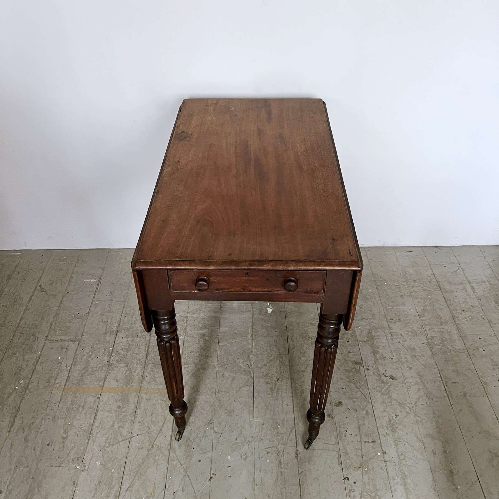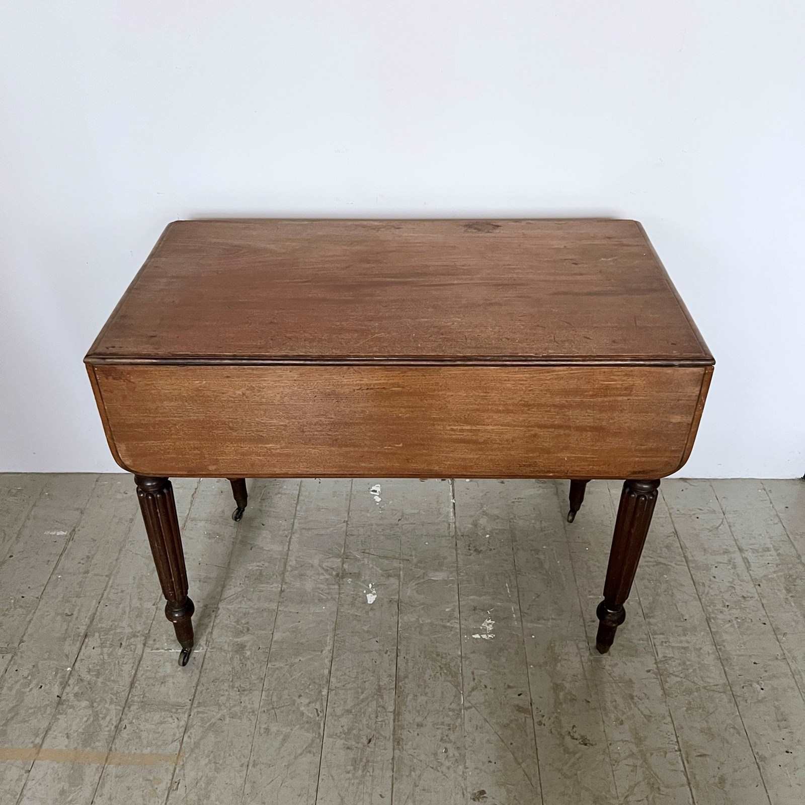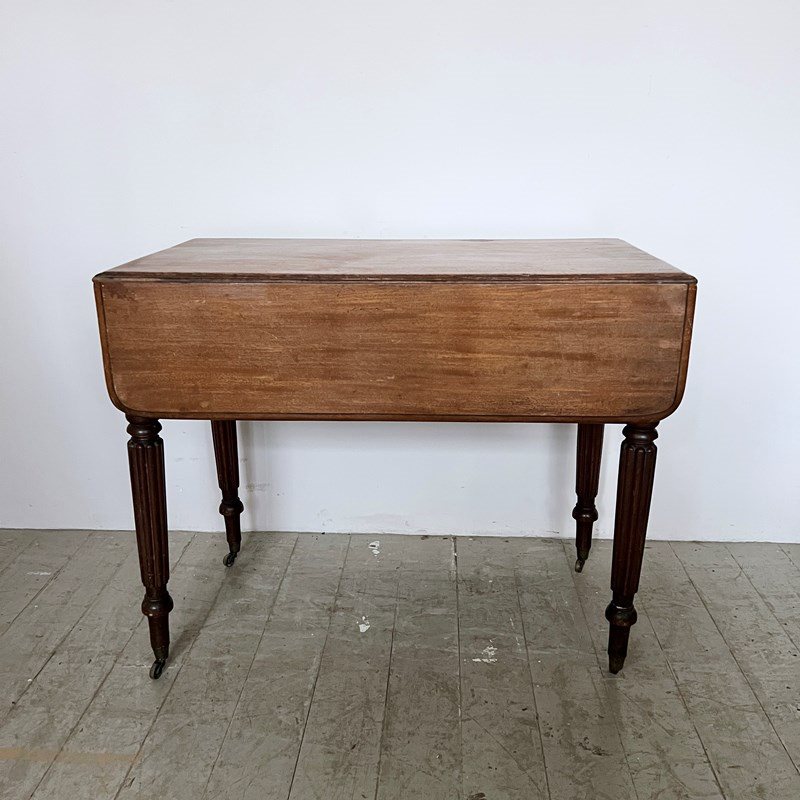 Early 20th century drop leaf table in good vintage condition. With stylised legs and supports finished with castors. The piece features one working drawer and one false drawer for decoration.