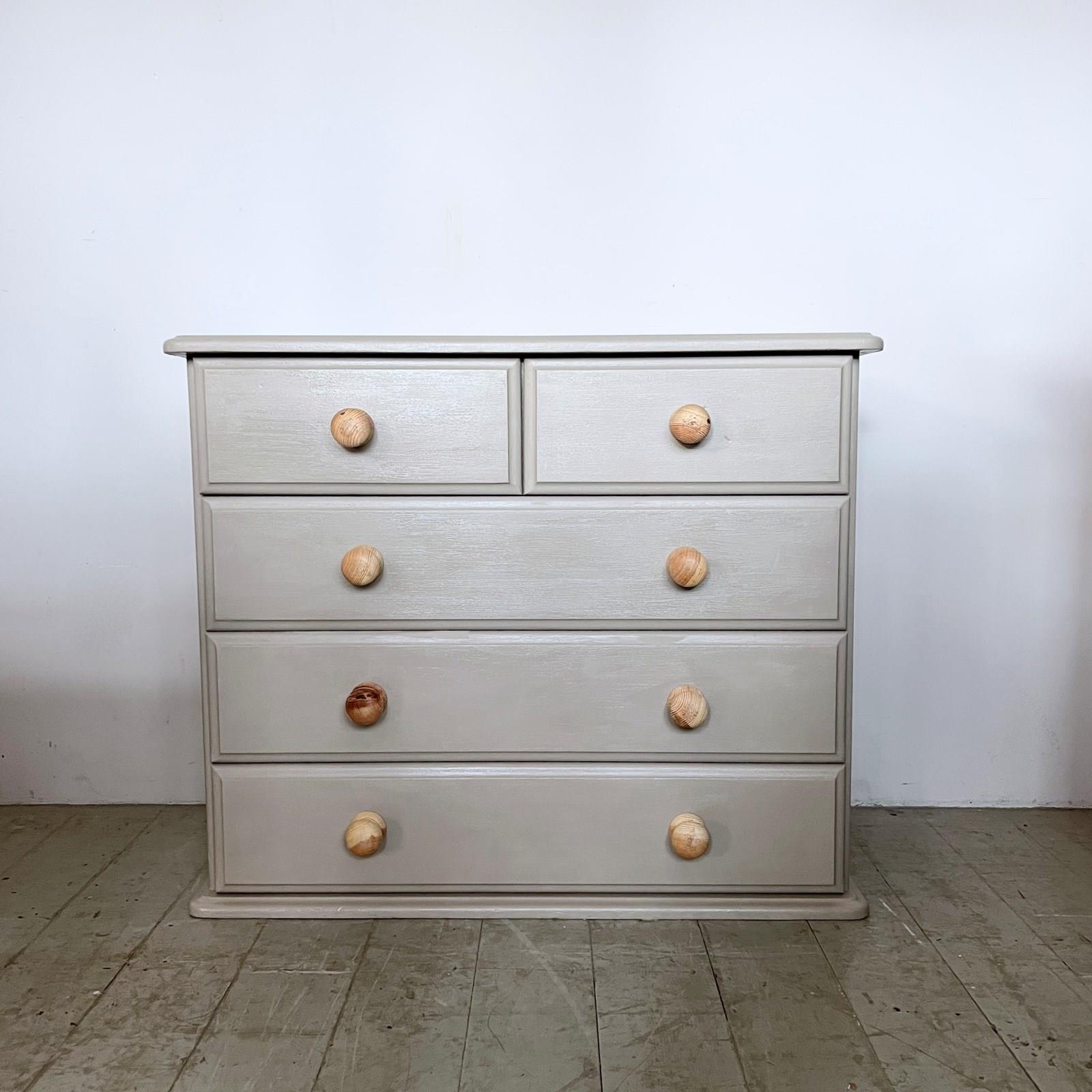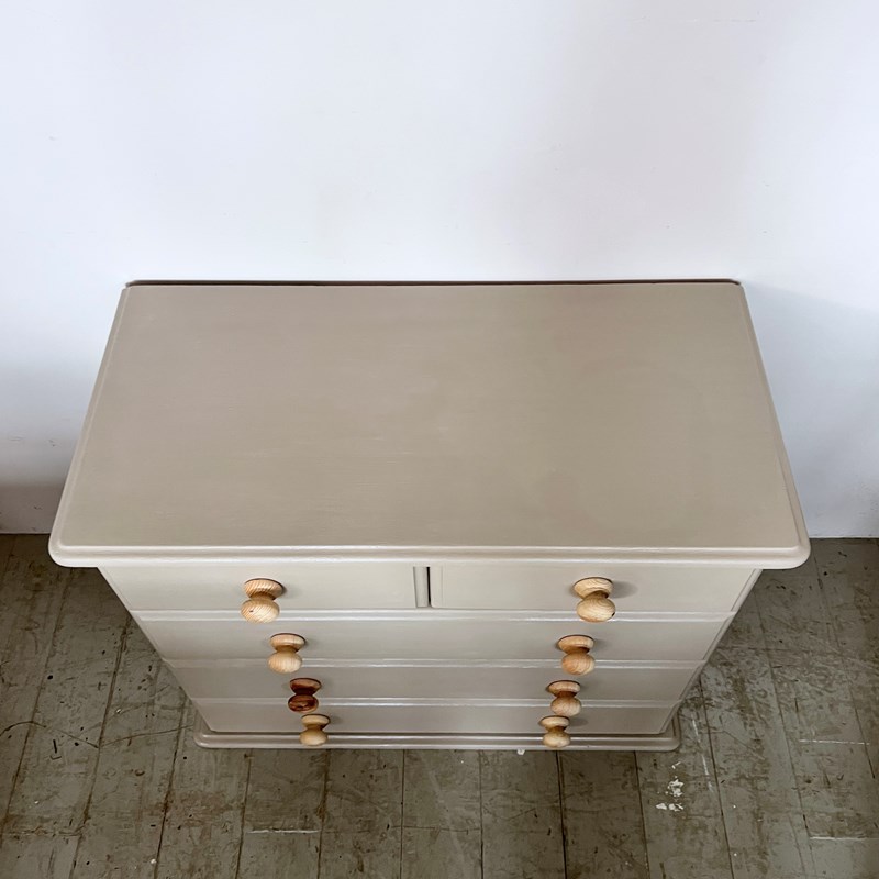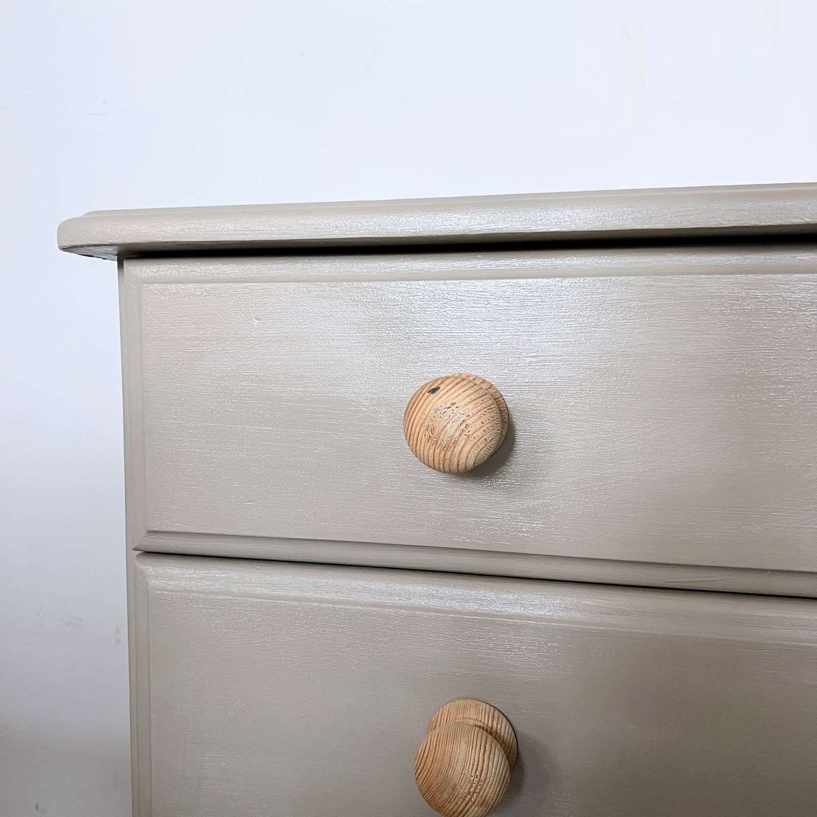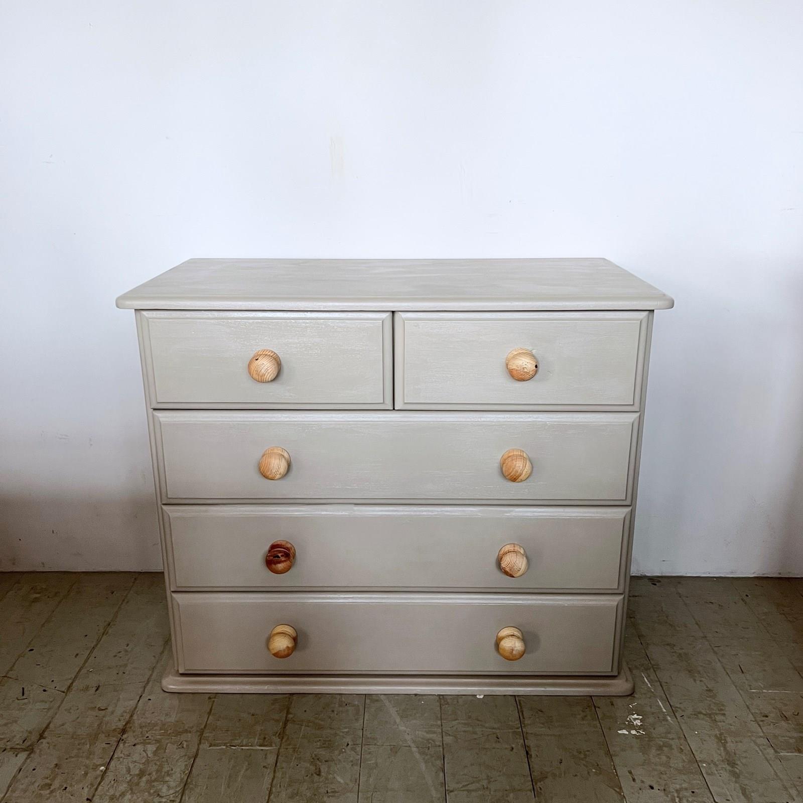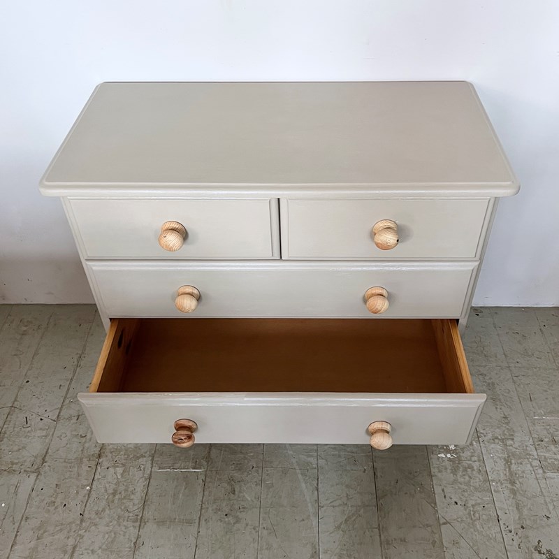 Small newly painted solid pine drawers. Handles left bare. Painted with Annie Sloan Coco chalk paint and finished with clear gloss lacquer.