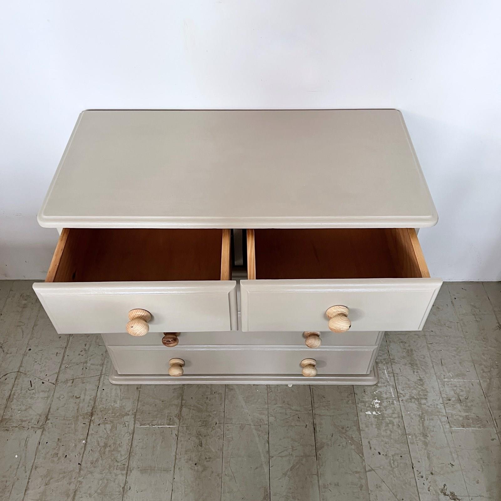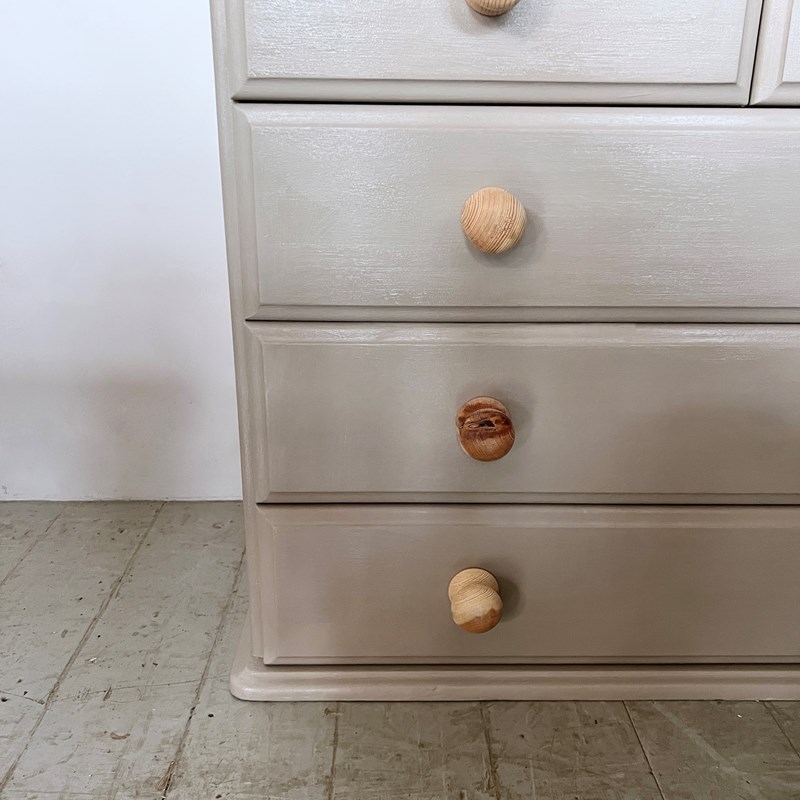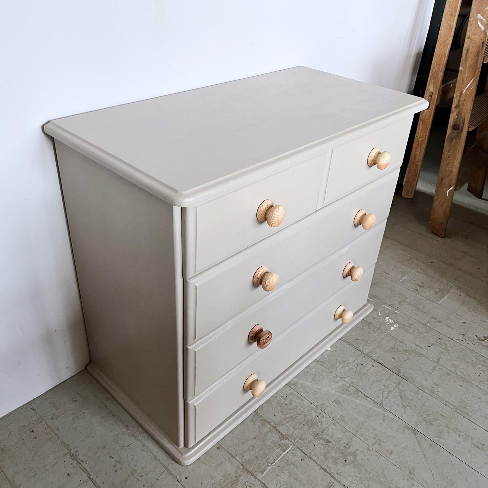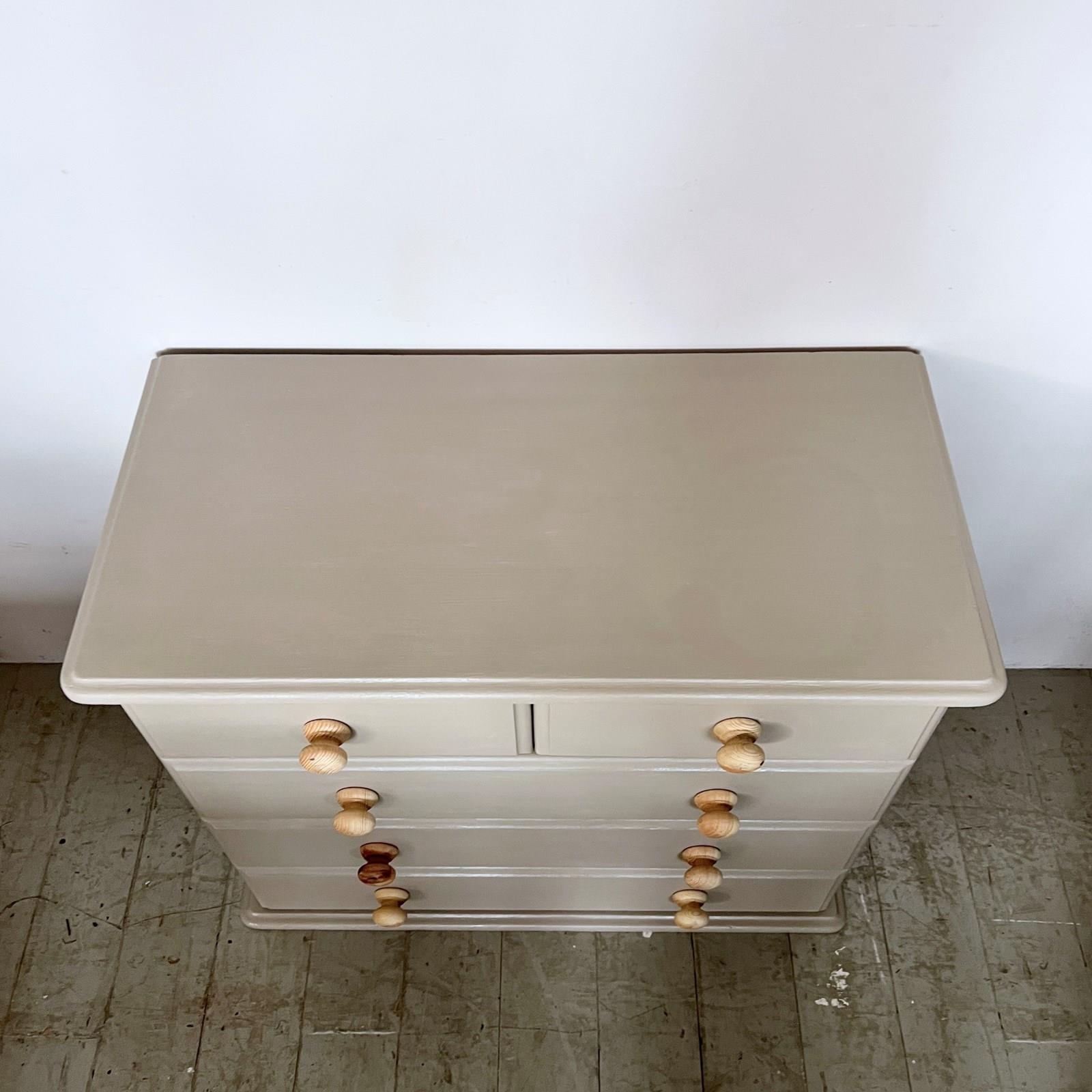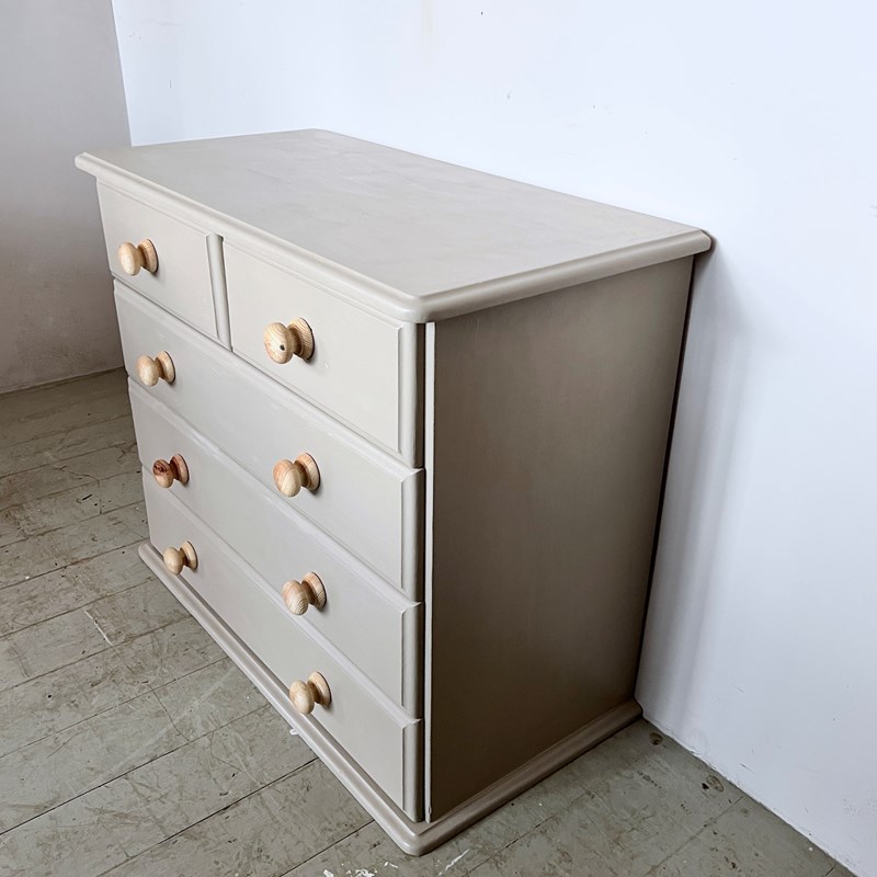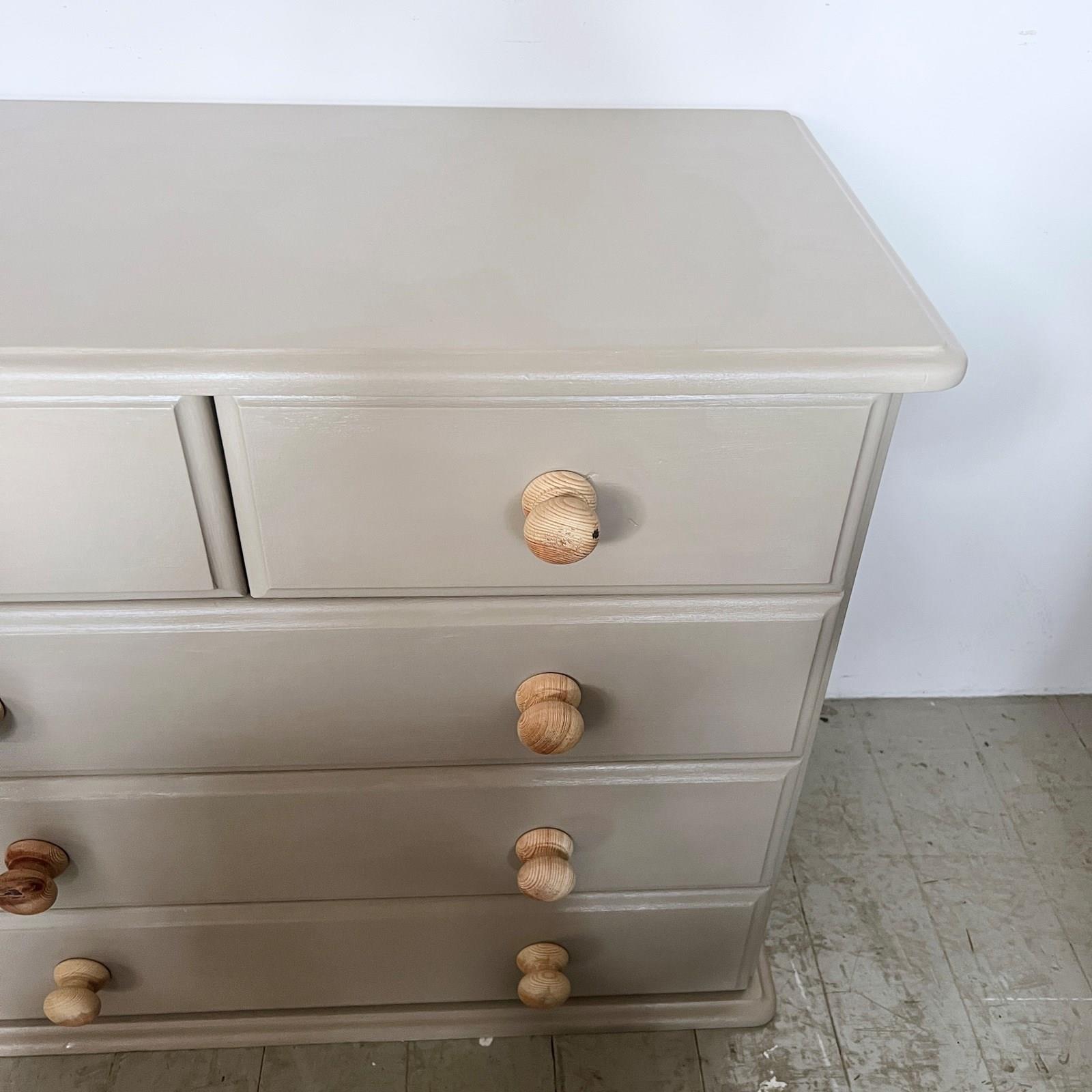 Small newly painted solid pine drawers. Handles left bare. Painted with Annie Sloan Coco chalk paint and finished with clear gloss lacquer.