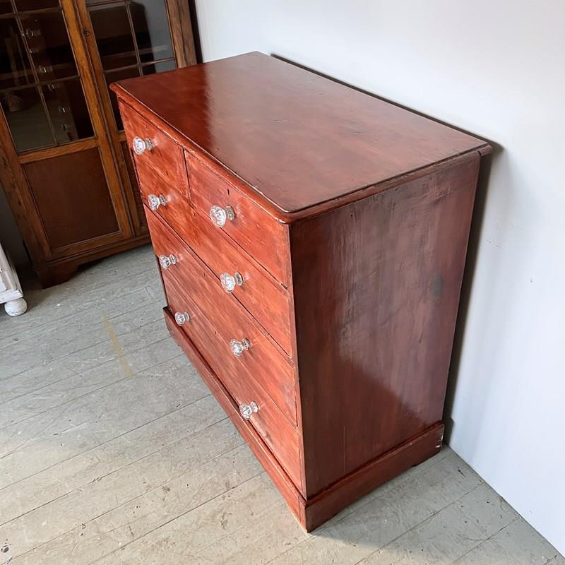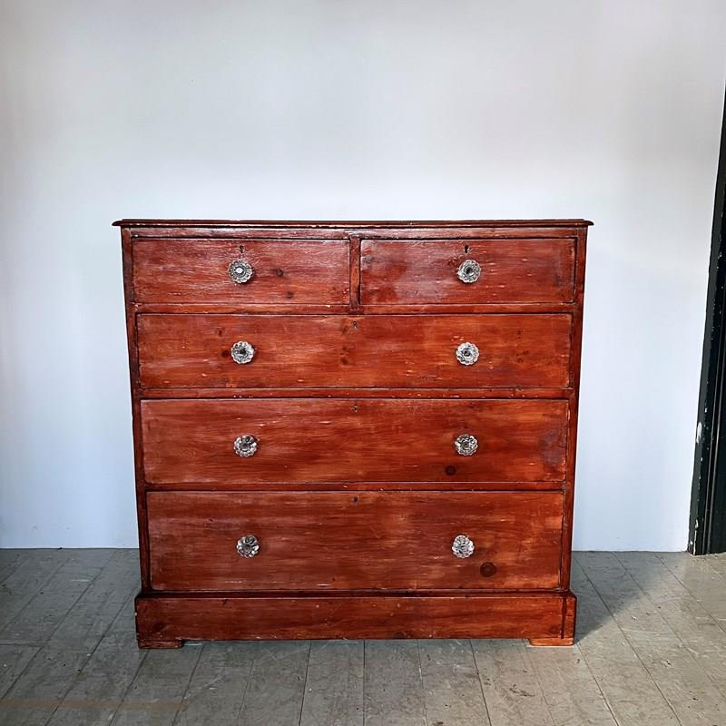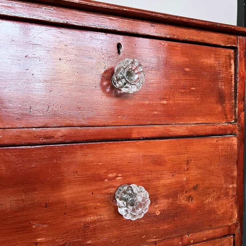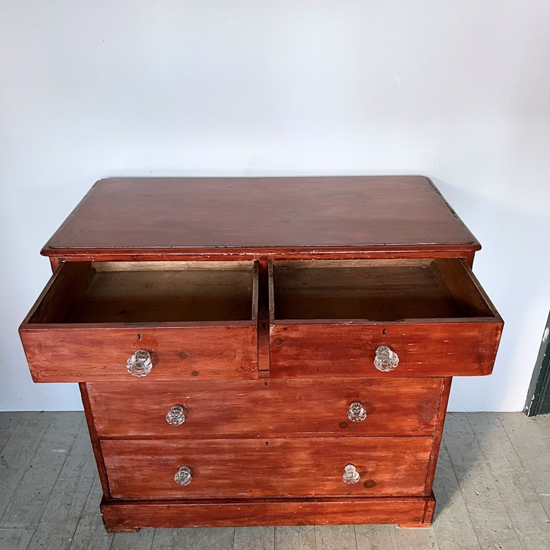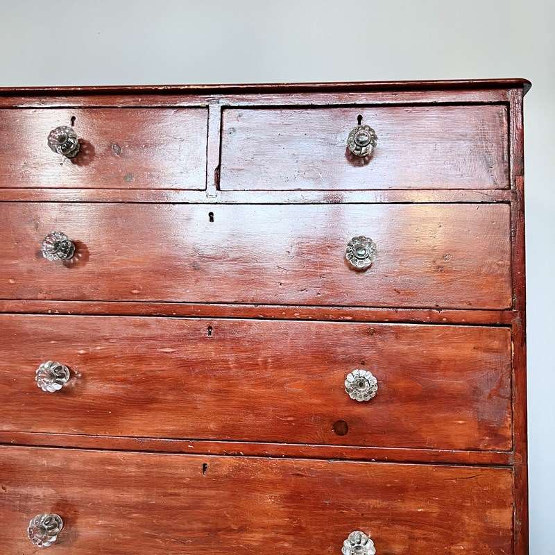 Stained Victorian Pine Chest Of Drawers With Glass Handles