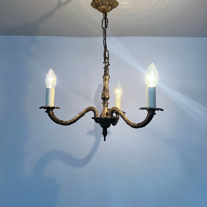 Three Arm Cast Brass Chandelier