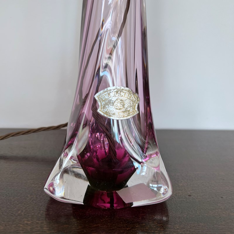 Val St Lambert Belgian Purple Crystal Table Lamp