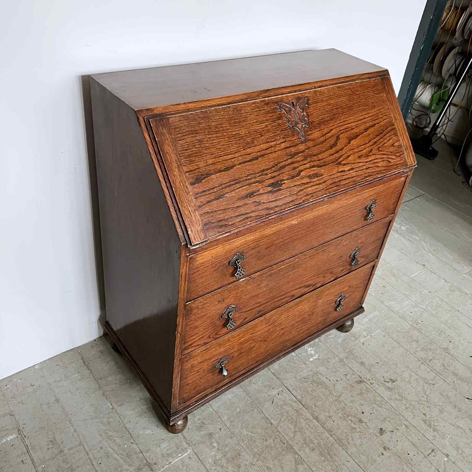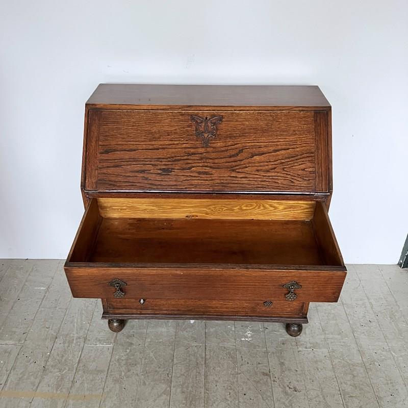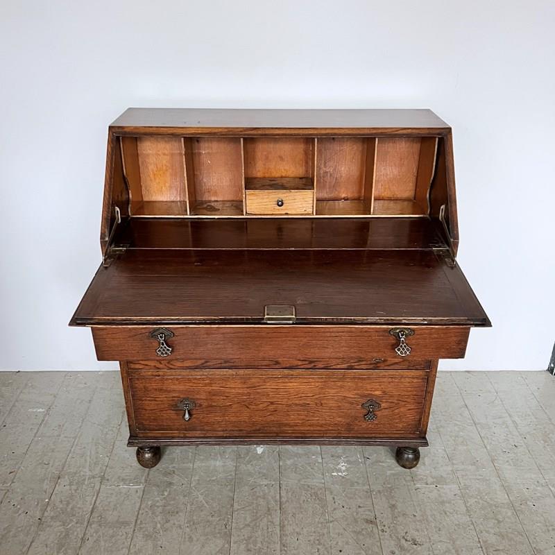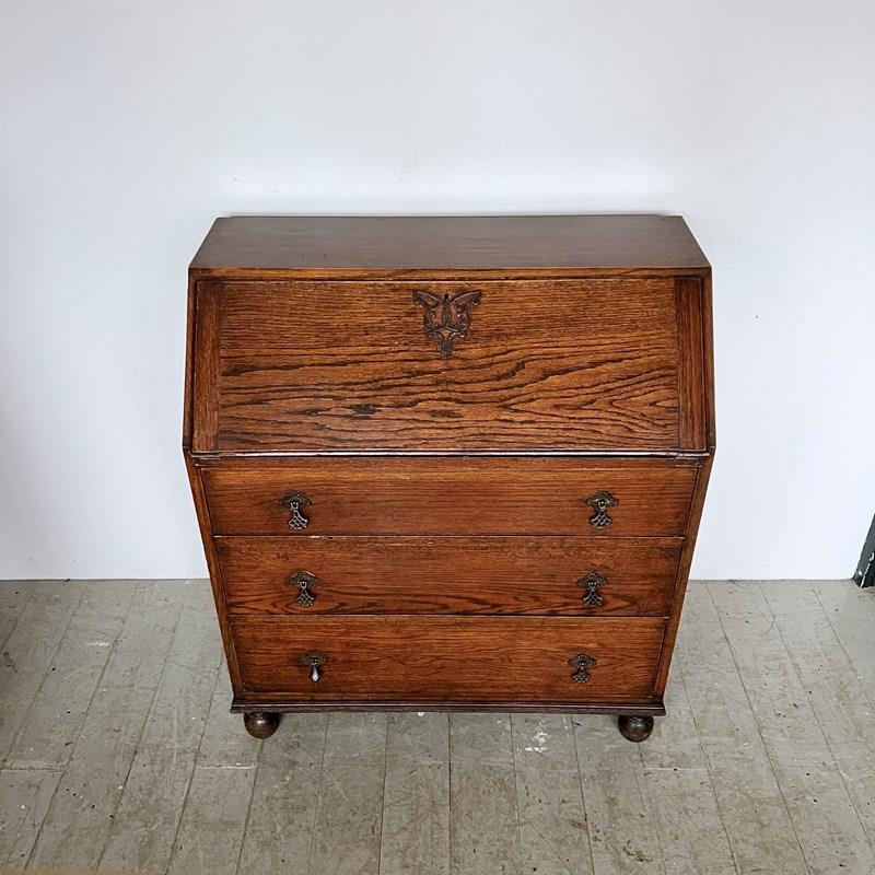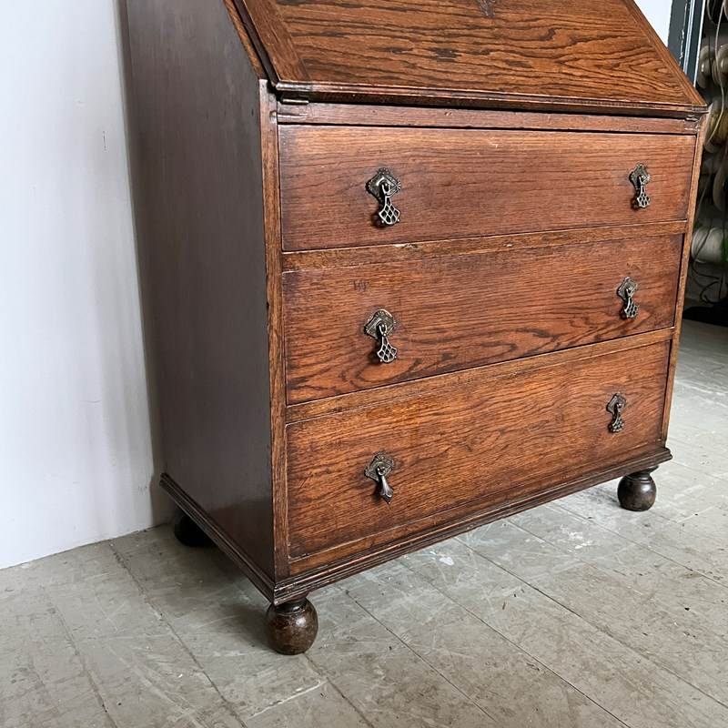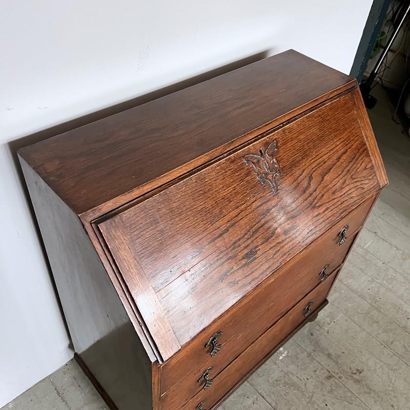 Solid wood bureau with three lower drawers. In great vintage condition.