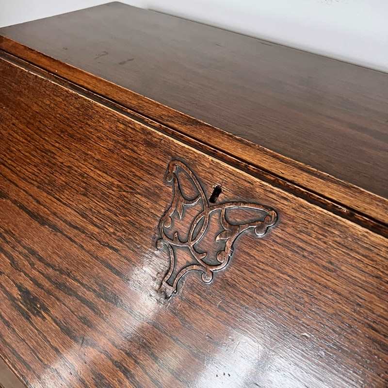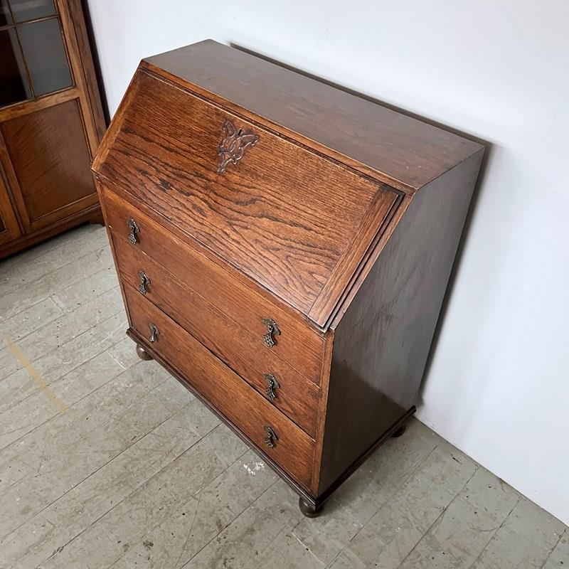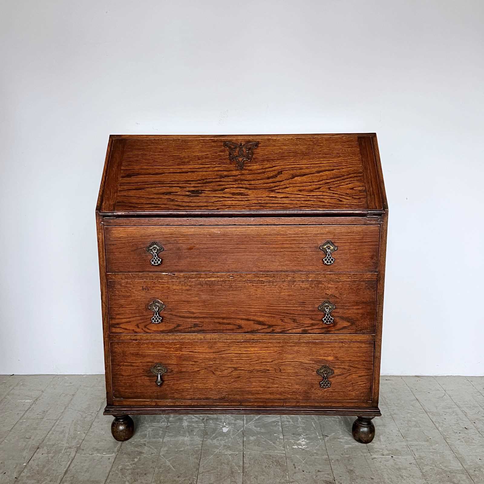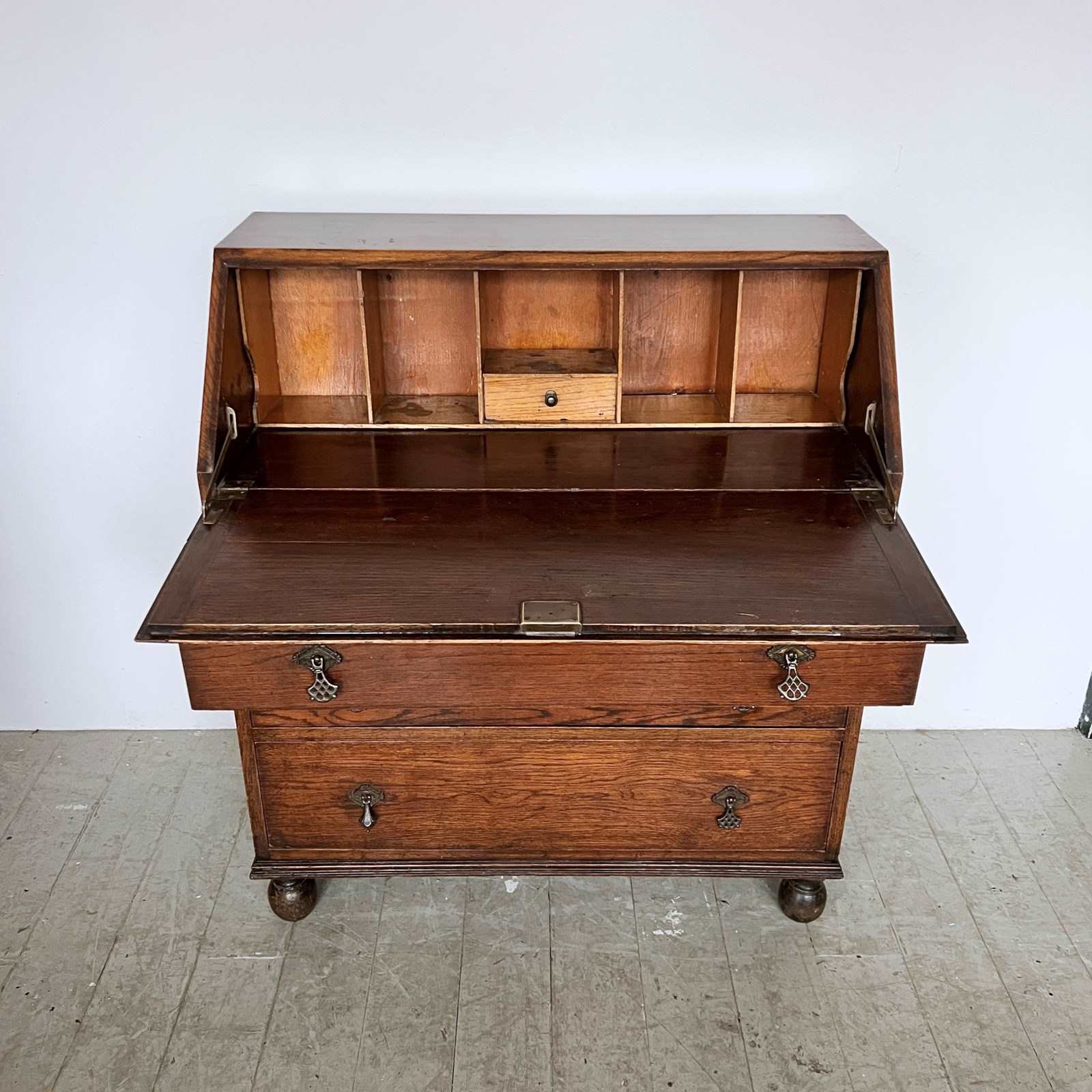 Solid wood bureau with three lower drawers. In great vintage condition.