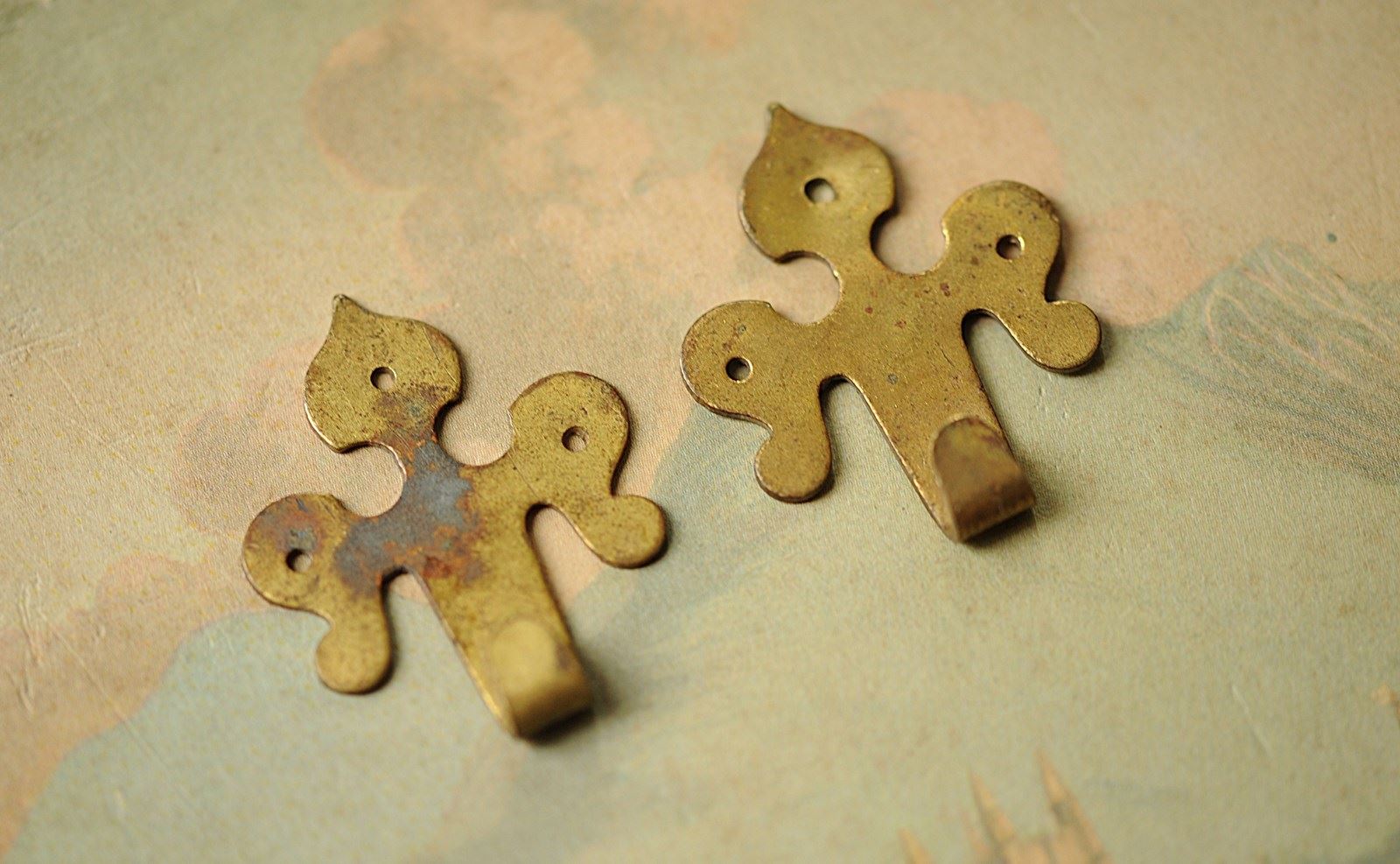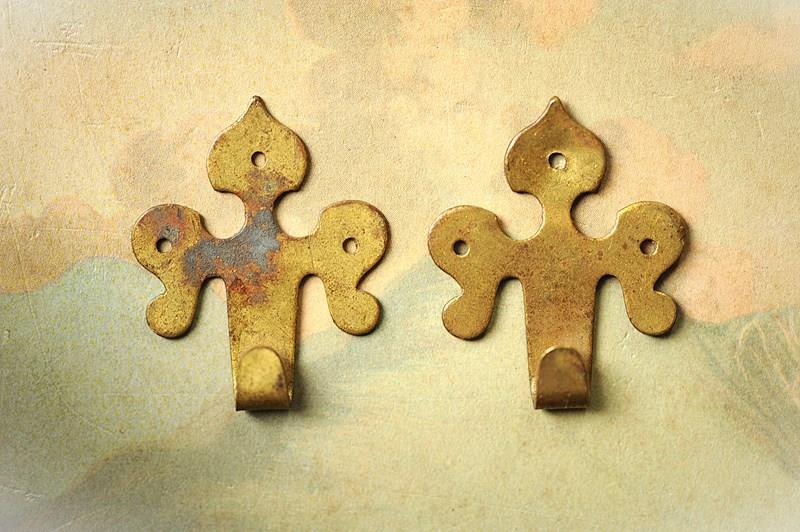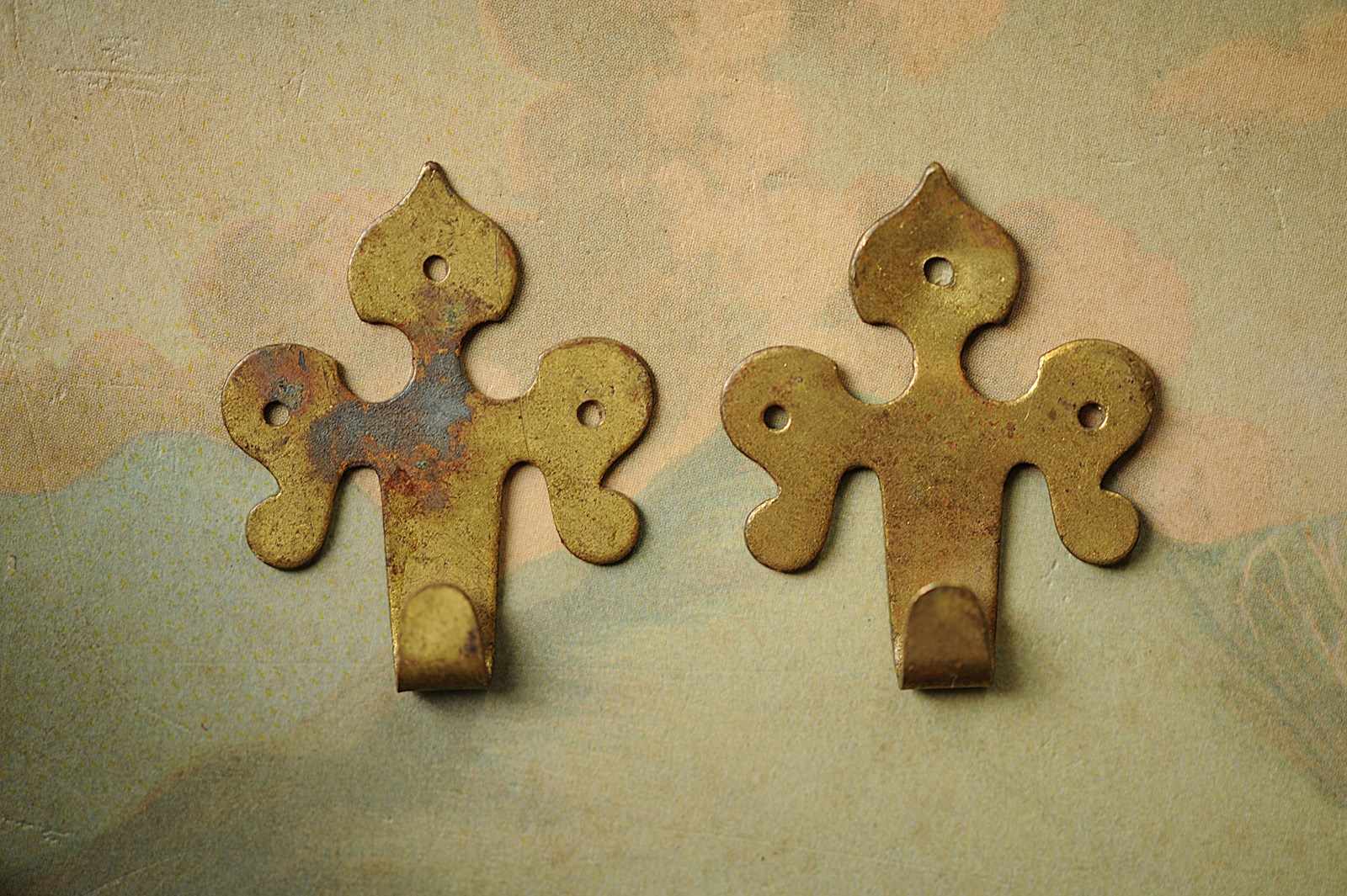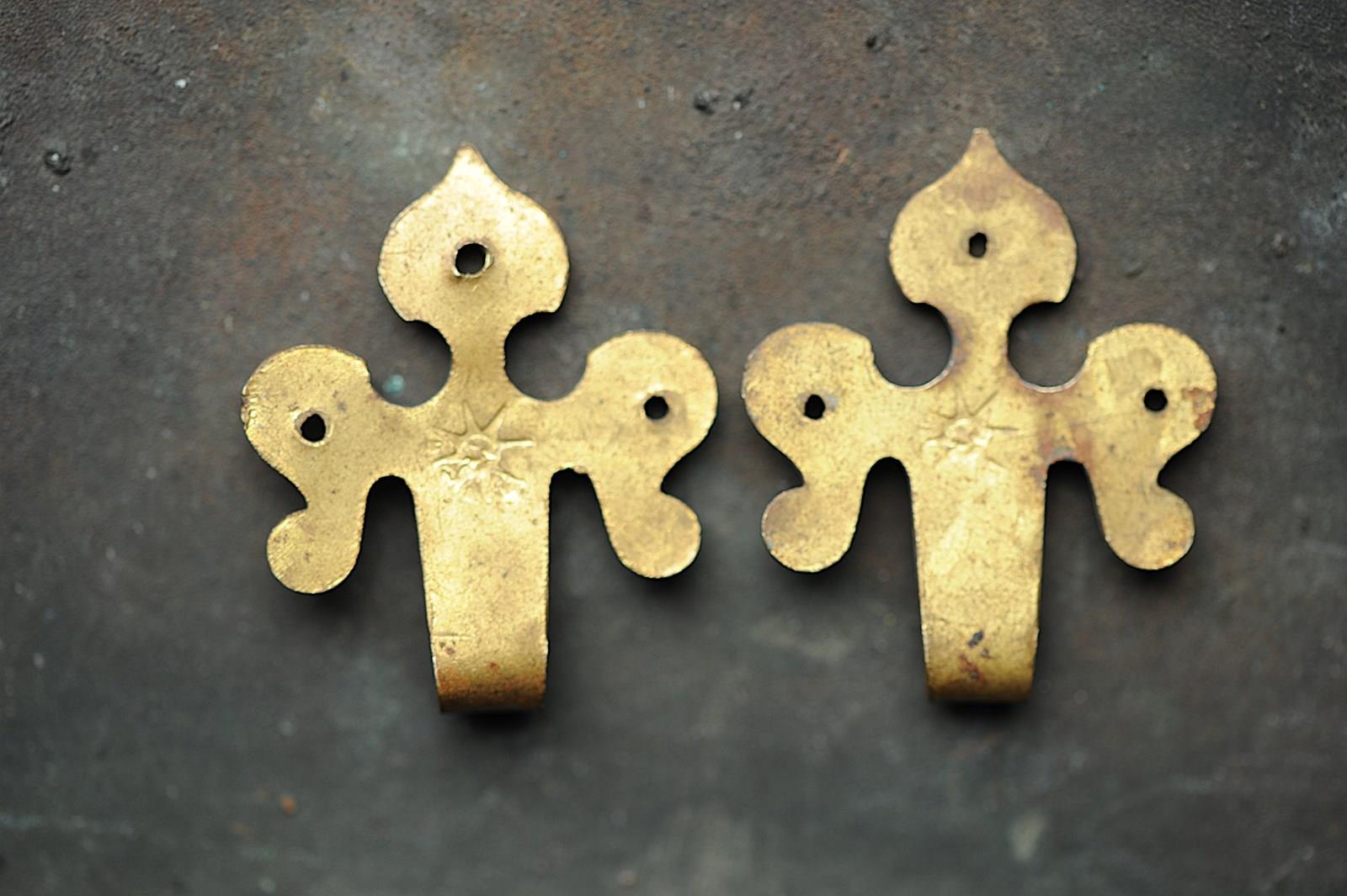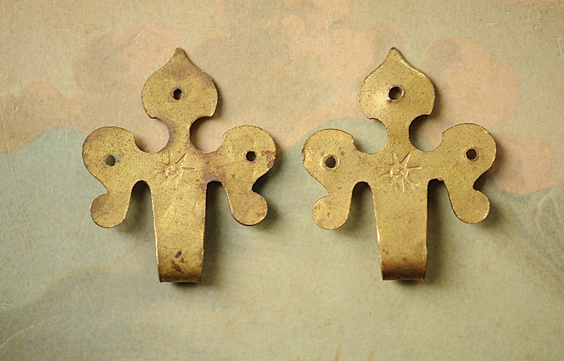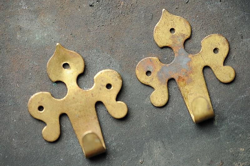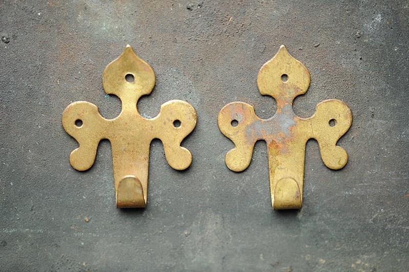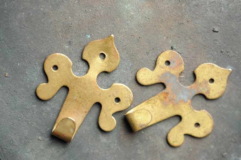 Circa 1870 brass wall mounted picture hooks.