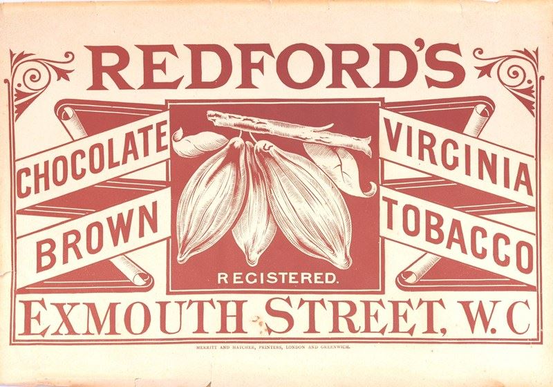 1890 Crate Label Redford's Tobacco London Packing Box Paper Sign Victorian Shop