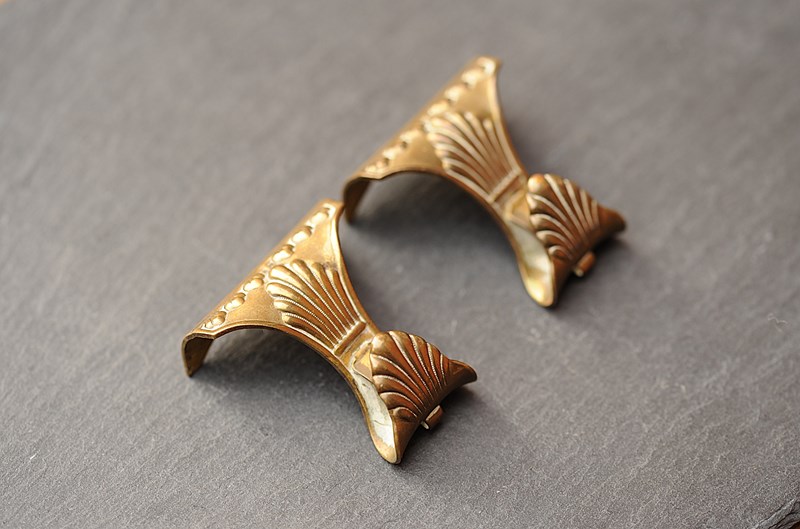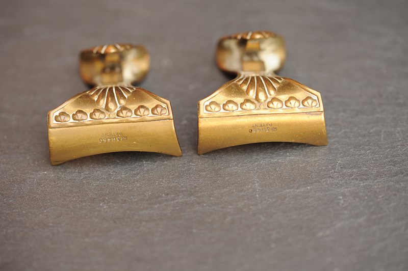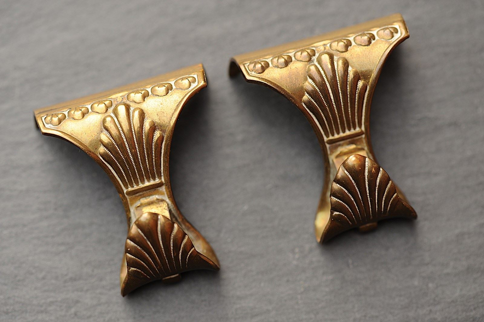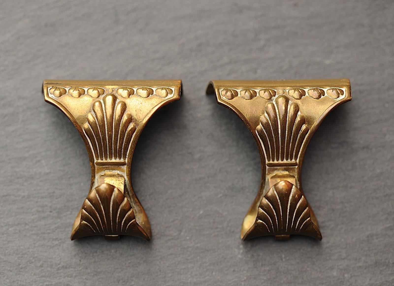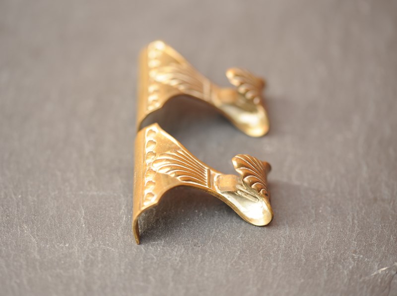 A highly decorative pair of English c1898 brass picture rail hooks. Height 2 inches or 50 mm. Both in very good condition, strong hooks. Sale is for the pair & includes delivery within the United Kingdom.