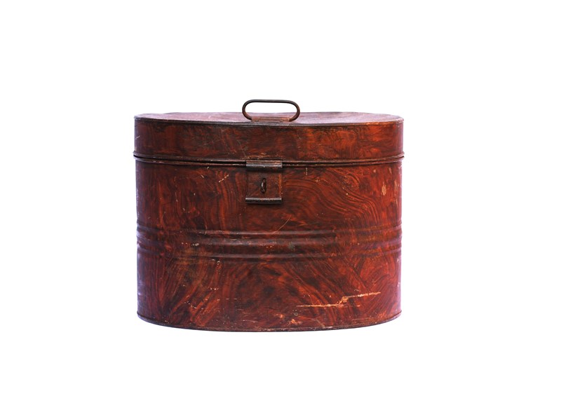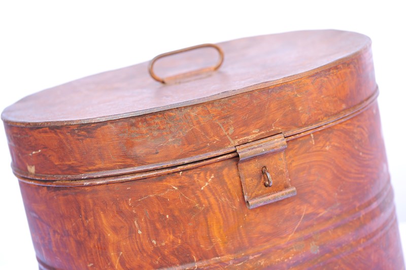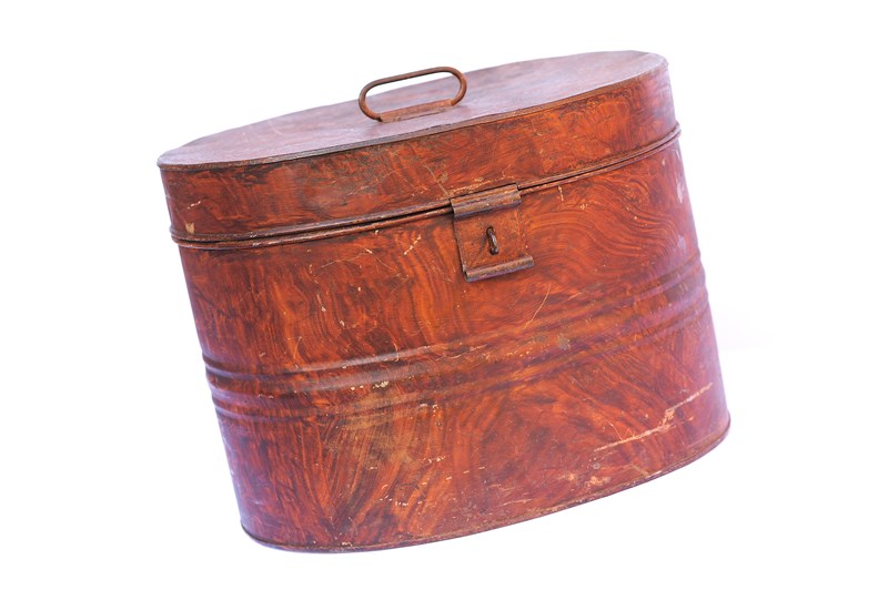 Toleware Hat Box Large Victorian Tin Hat Box Metal Trunk Antique Clothes 19Th C