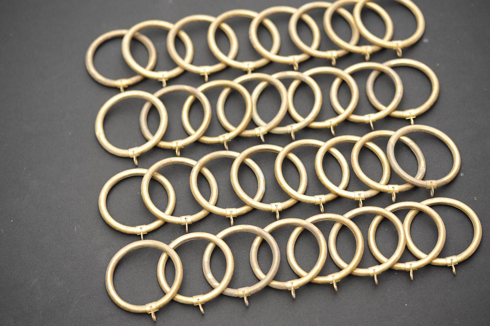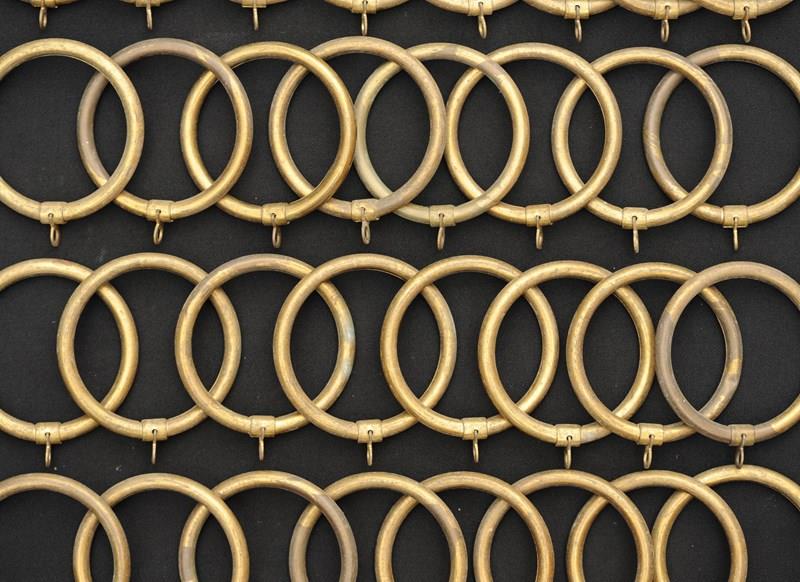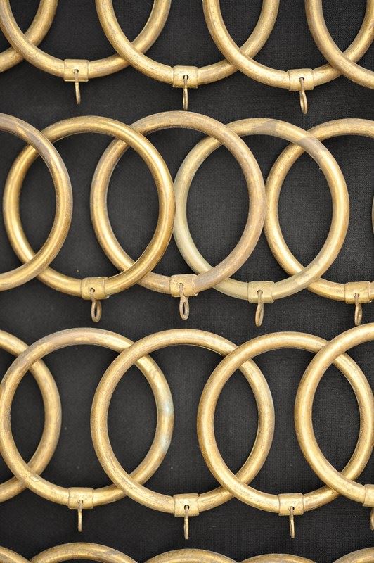 A good full matching set of 32 late 19th century English brass curtain pole rings. Approximately 2.5 inches in external diameter, 2 inches internal. All in good overall untouched original condition. Free UK inland tracked delivery. Returns are happily accepted.