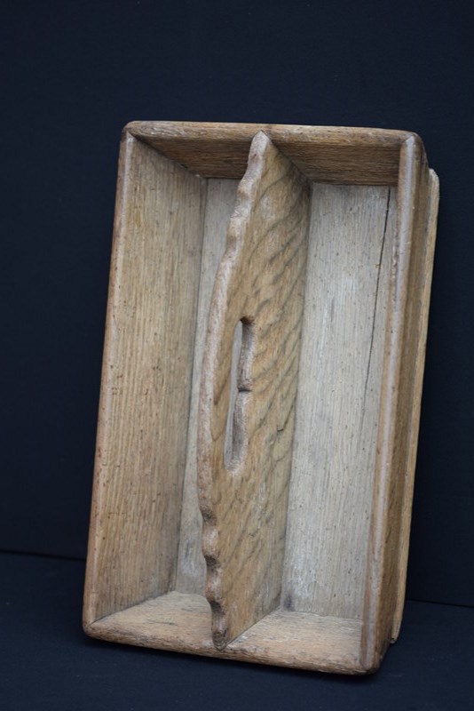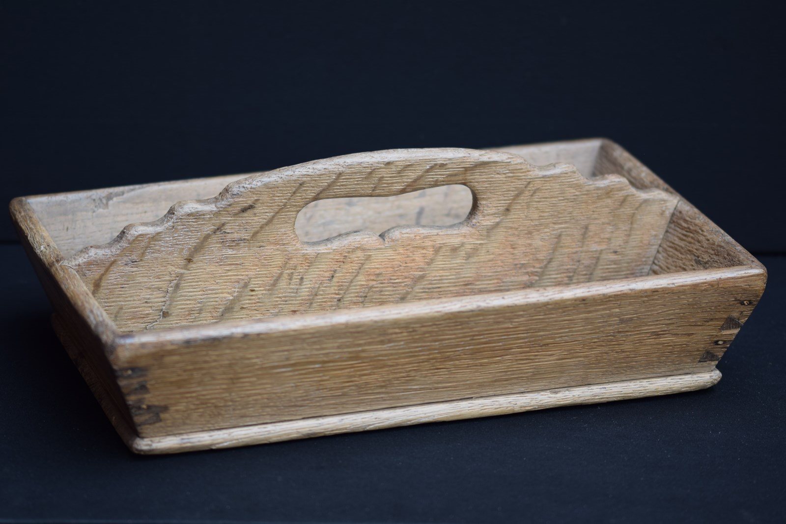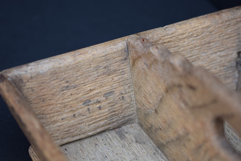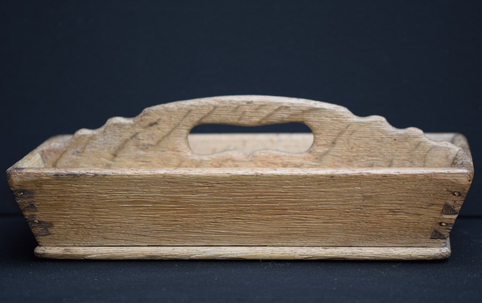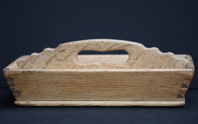 A 19th Century Welsh oak cutlery tray with an ornate hand carved centre section & carry handle. Good original untouched condition.