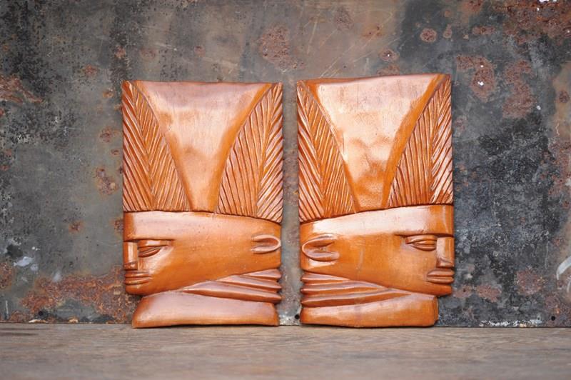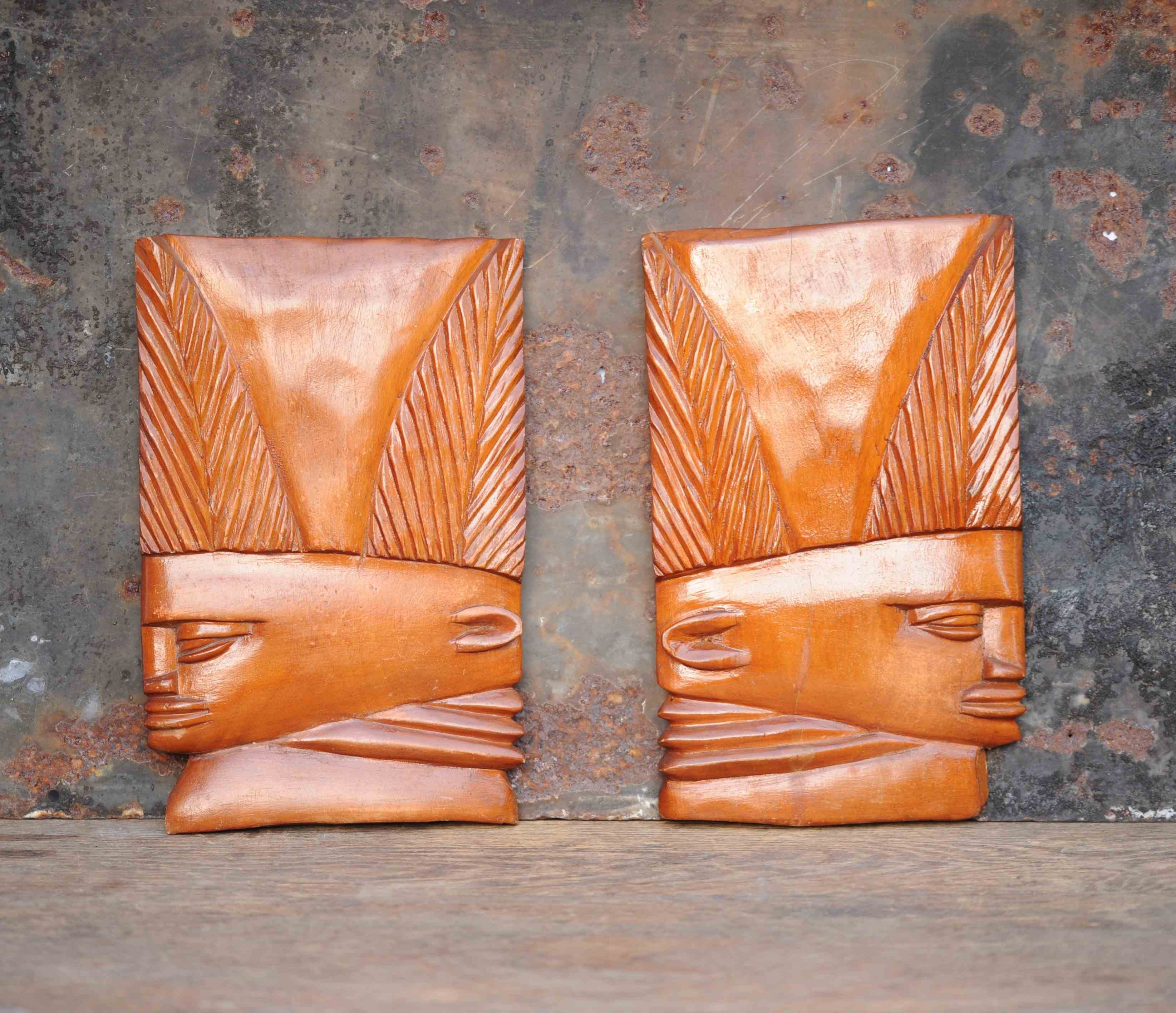 Geometric Wall Plaques Carved Wooden Head Door Picture Wood Folk Old Art African