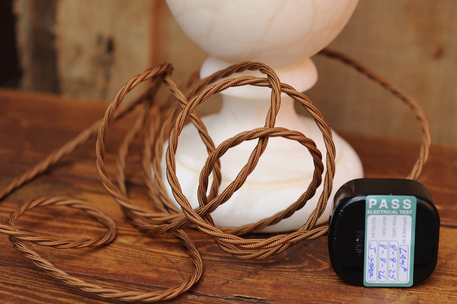 An absolutely stunning Italian veined alabaster side lamp. Of classic form & standing at 16.5 inches in height. Weight 3.5 kg. Rewired with gold fabric braided flex with a running length of 2.3 metres. Toggle switch, normal bayonet bulb fitting, shade ring. Full working condition & supplied Pat tested. Sale includes UK inland tracked delivery.