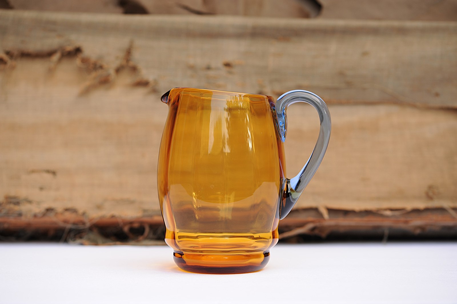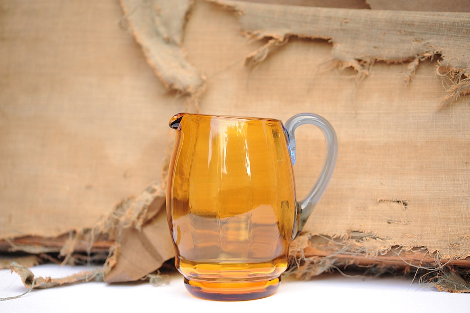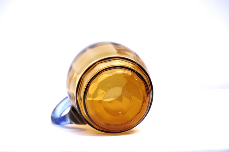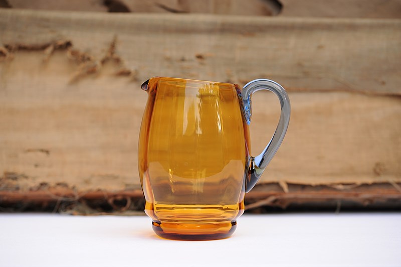 Amber & Blue Glass Jug Vintage Art Deco Antique Glass Vase Table Kitchen Ewer