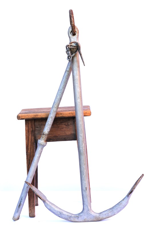 Old Metal Boat Anchor. Ideal for display purposes. Height 32 inches. Span 18 inches. Around 10 kg in weight. Sale includes delivery within the United Kingdom.