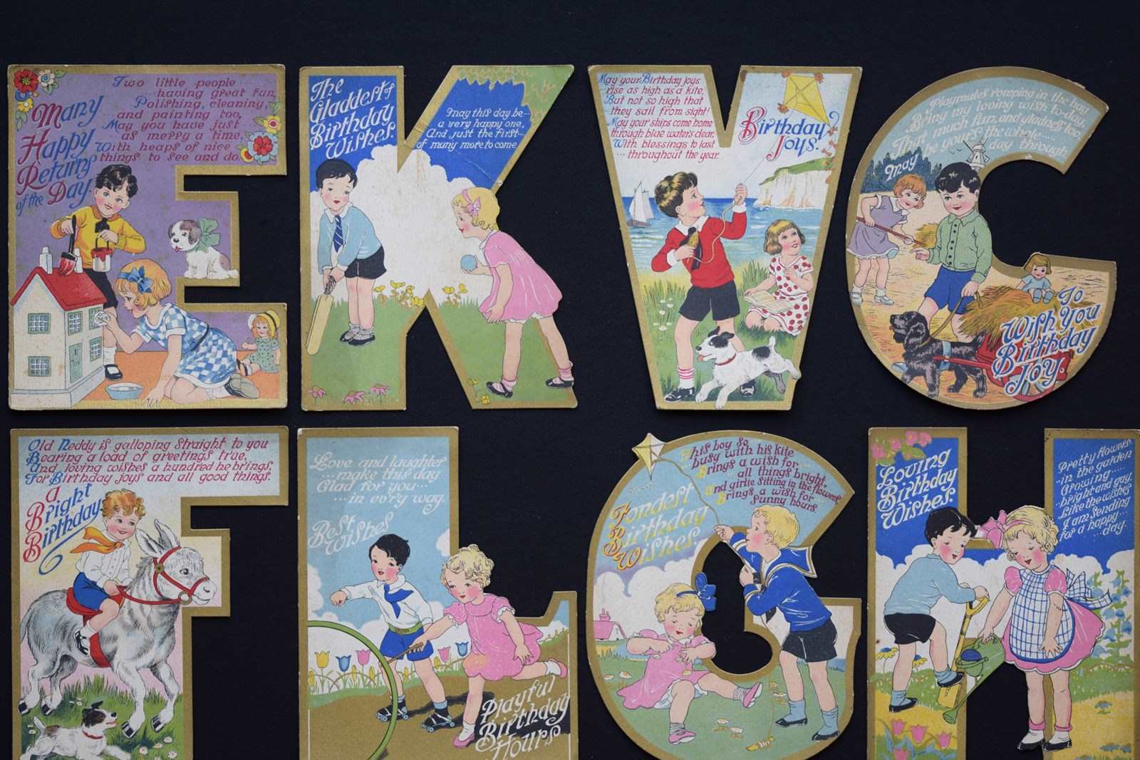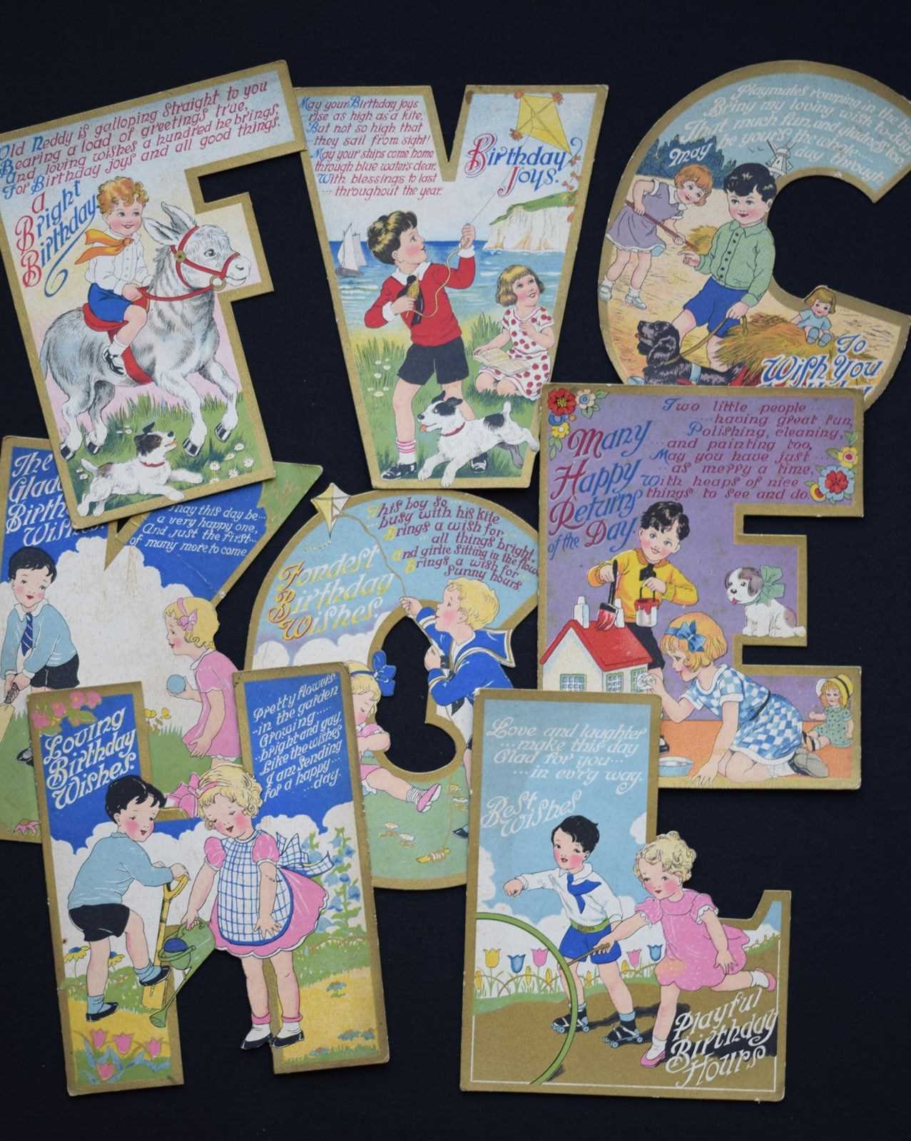 Birthday Cards Antique 1930S Cards Shaped As Initials Letters Ephemera Vintage