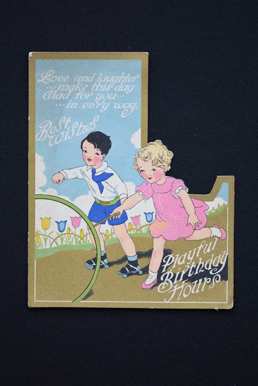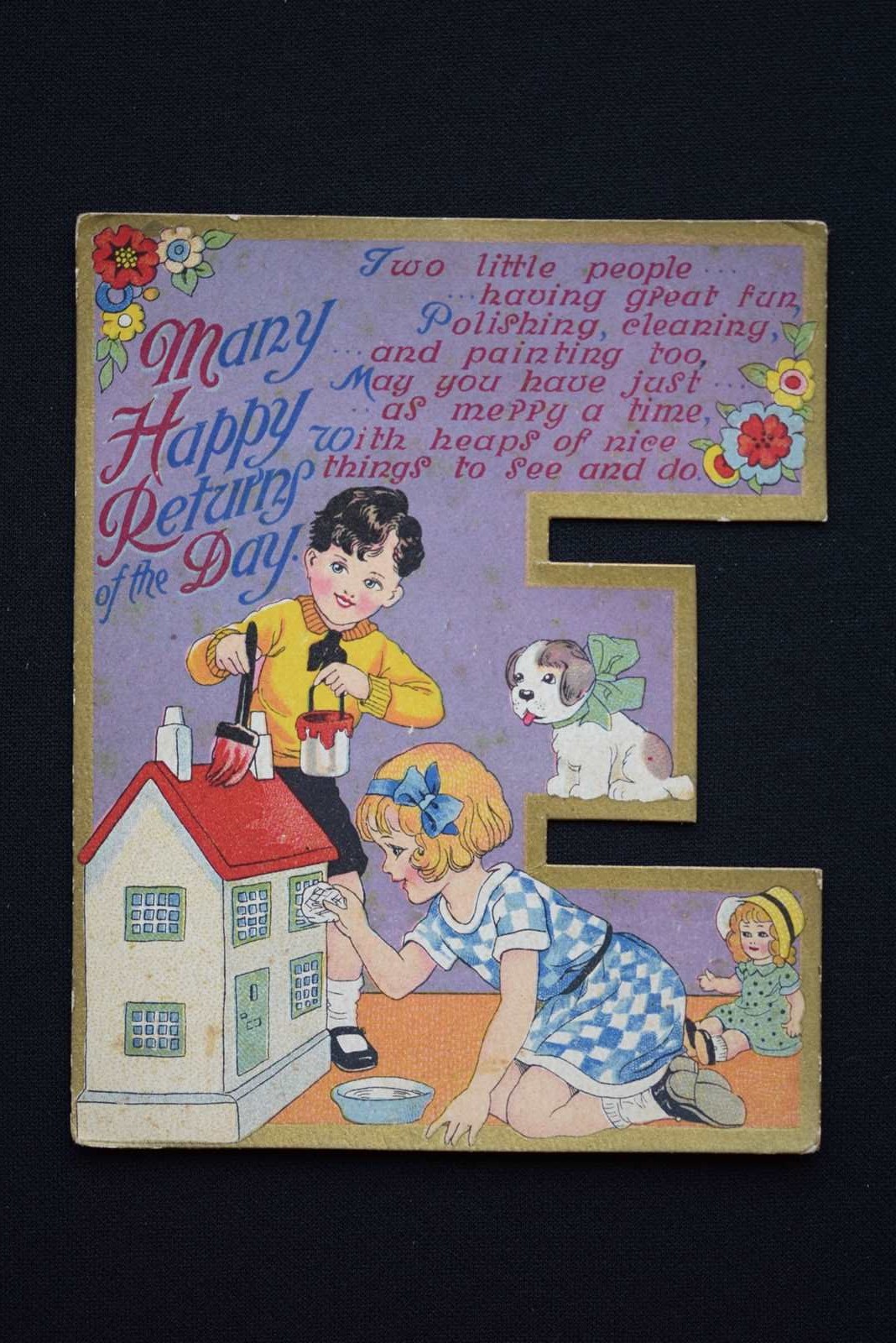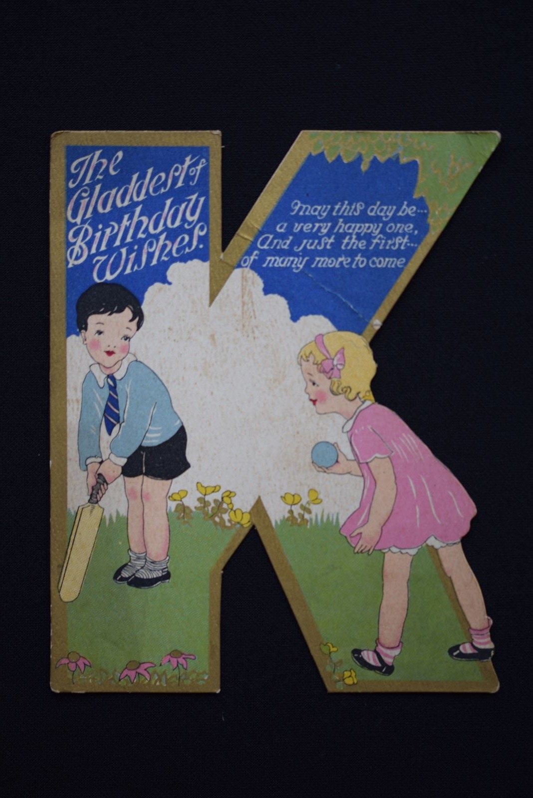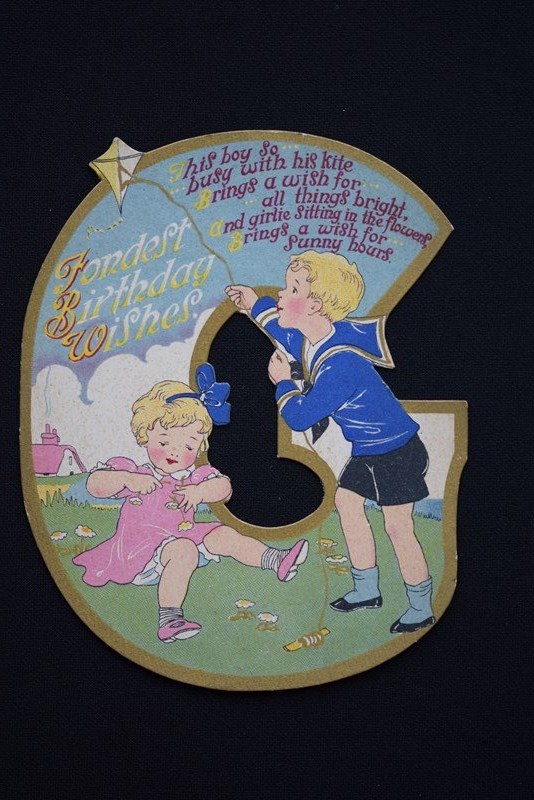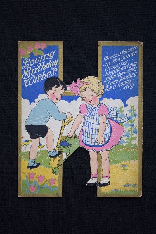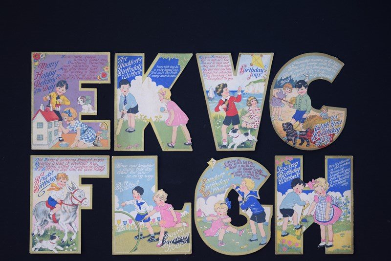 These cards are so sweet & unusual too. Original English 1930's period Birthday Cards in the shape of initials. Letters / Initials available are H, C, V, F, L, G, E & K. They are one piece of card in the shape of a letter. The backs are plain with no writing on, they have never actually been used for the intended purpose. They each measure approximately 5.5 inches in height & 4.25 inches in width. For their age they are in very good condition, with the colours still bright, they are extremely well detailed & designed. These would look great professionally framed up individually, possibly to celebrate the birth of a child? Something which could then be kept by them forever. Price is per card & we will mark off the letters sold as we go along, please enquire for your desired letter & we will confirm availability. Price includes UK inland tracked delivery, these will be sent carefully boxed rather than just put in an envelope to keep them in good condition whilst in transit.