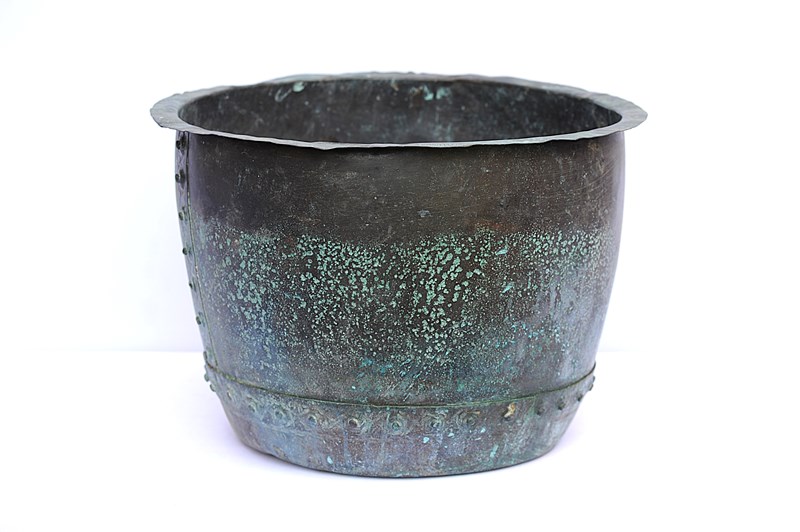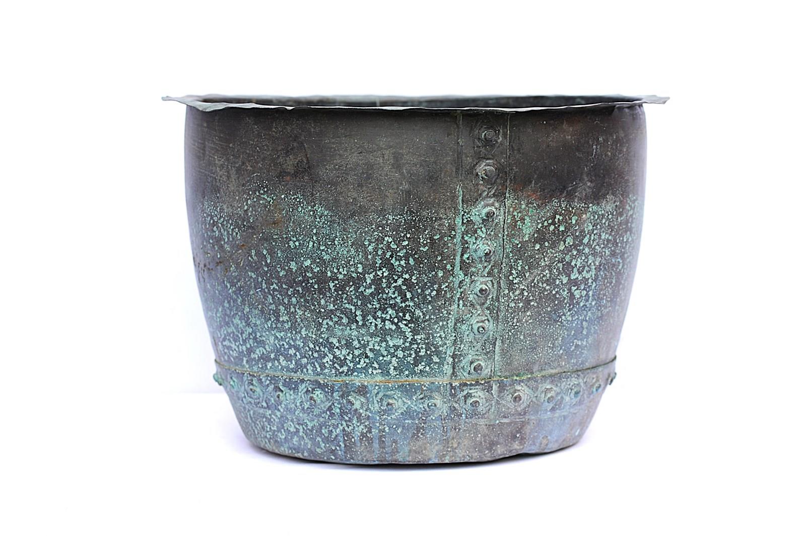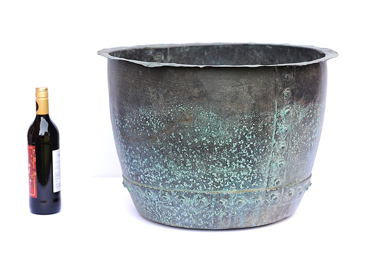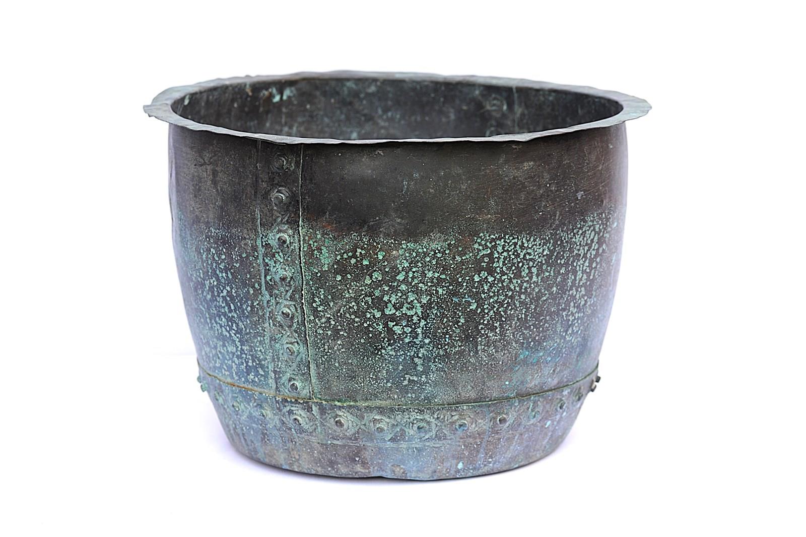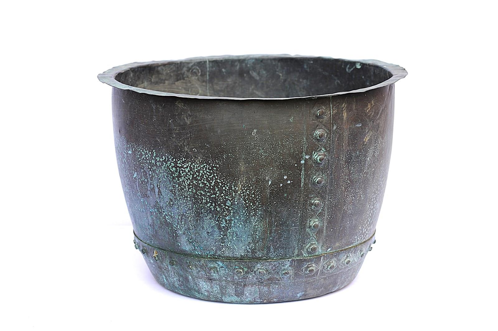 Antique Riveted Copper Planter Trough Urn Pot Cauldron Tank Garden Log Box Bin