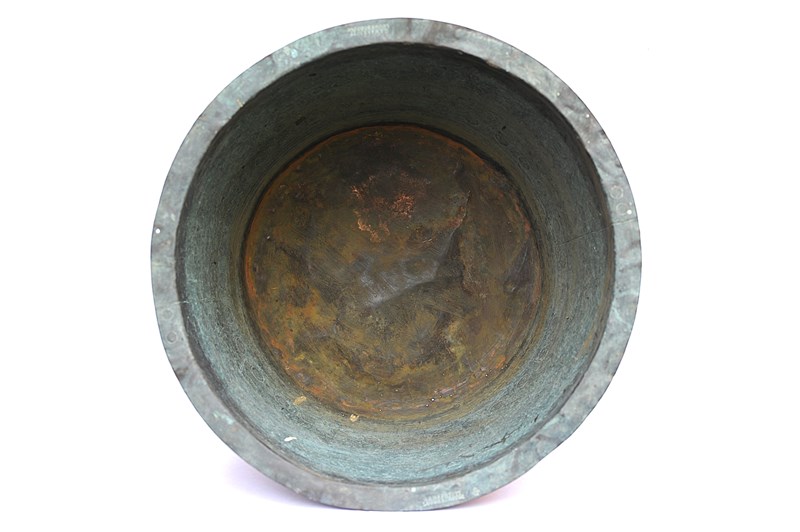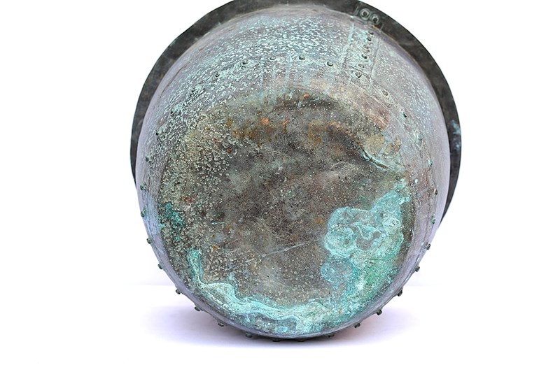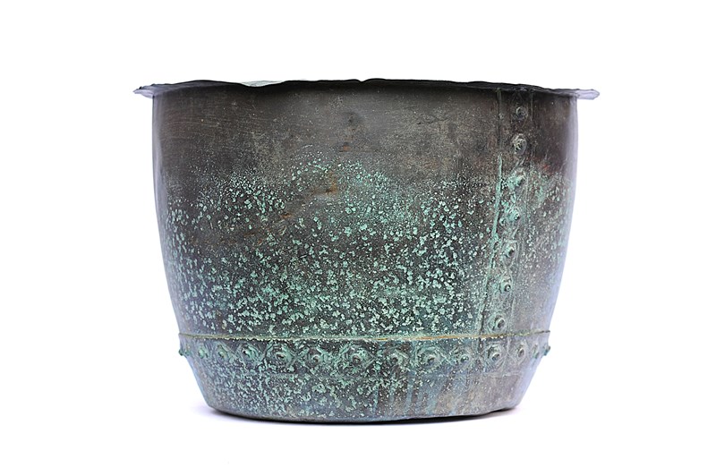 Currently our favourite riveted copper in stock presently. We recently picked this up near Loughborough so it hadn't been far in its whole life as it is marked to the top rim C.S.Marriott, Loughborough. Mid 19th century in date & now carrying the most wonderful untouched colour. Small wear holes to the base so now perfect for planting up. We love it!