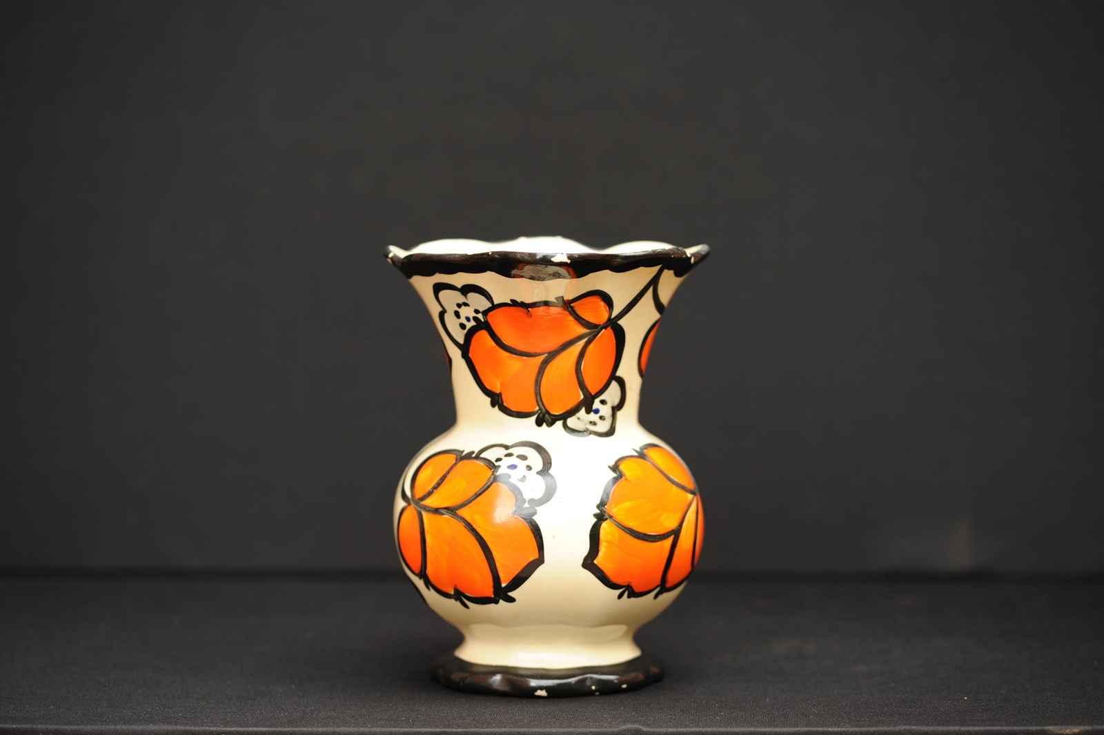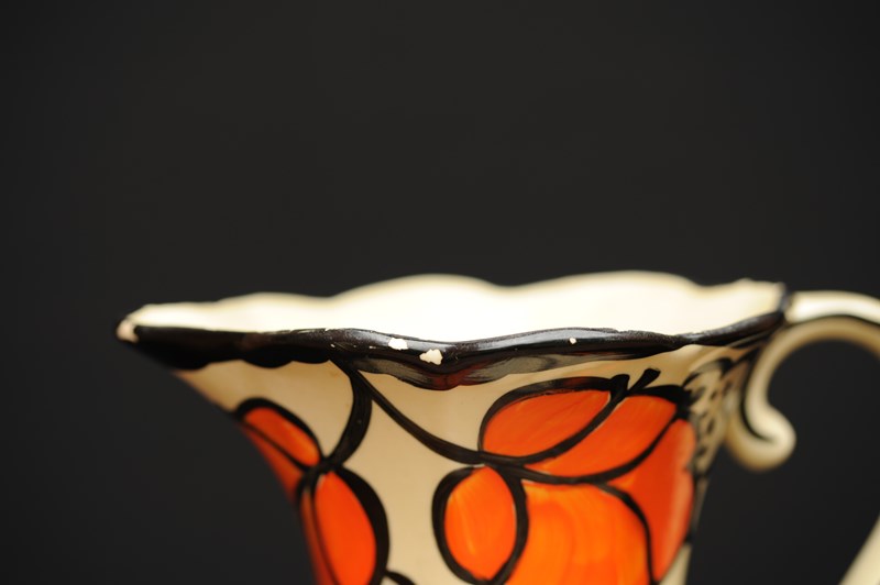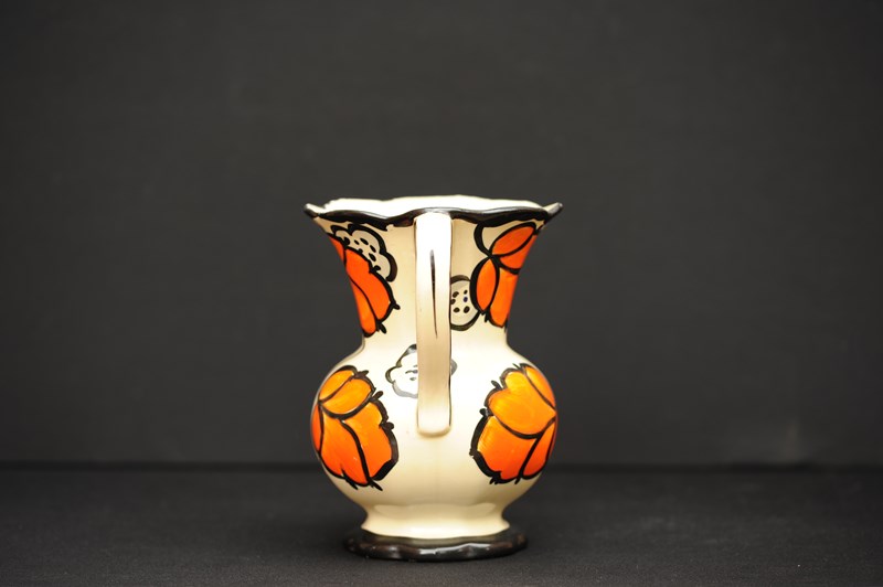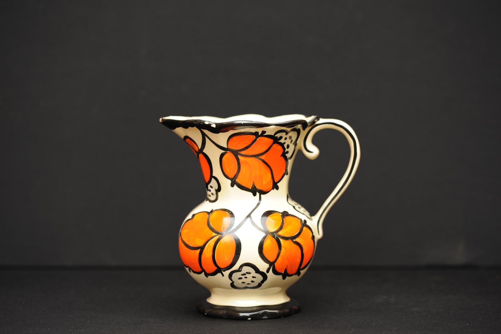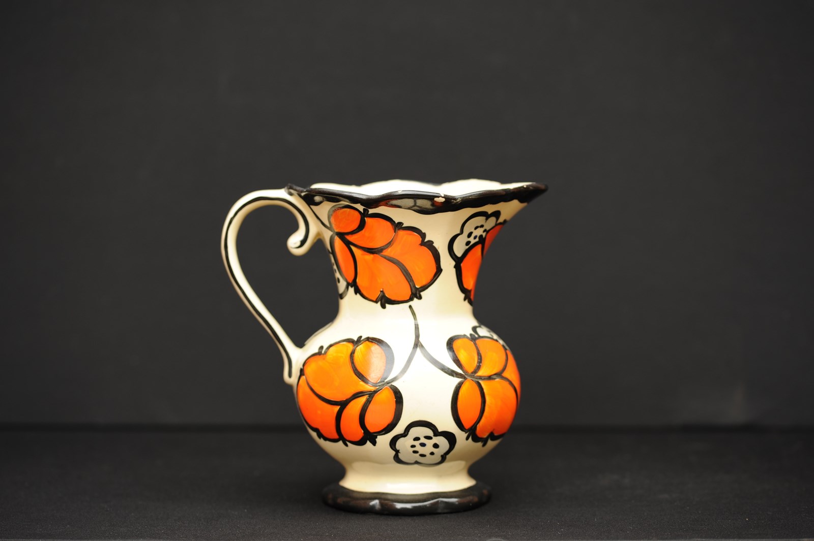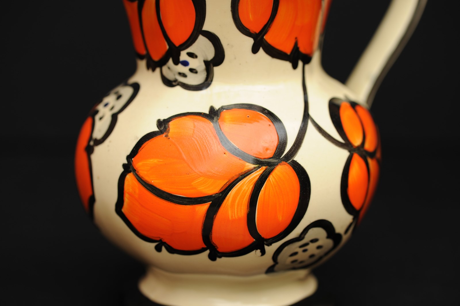 Art Deco Jug Antique Hand Painted Pottery Vase Jug Vintage 1930 Hop Jug Orange