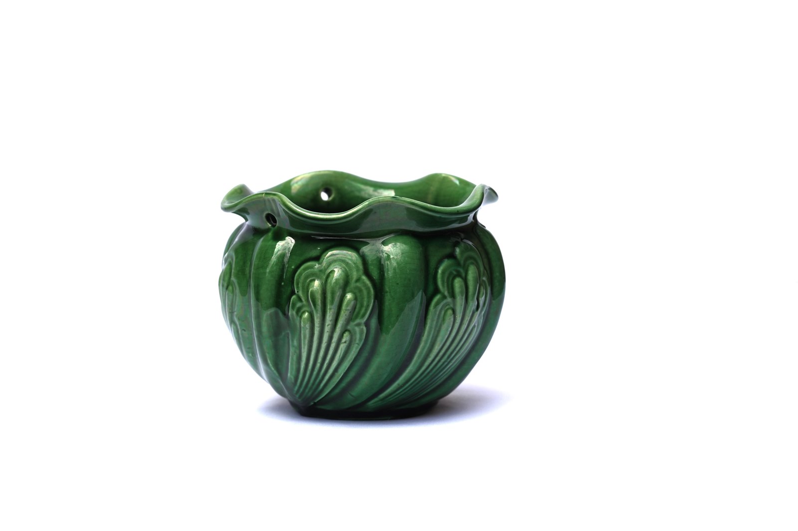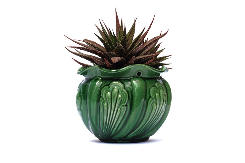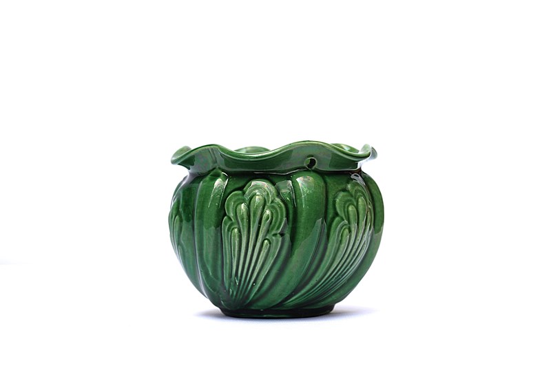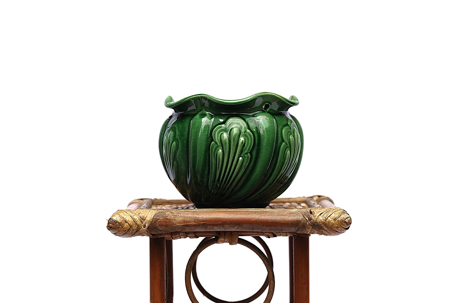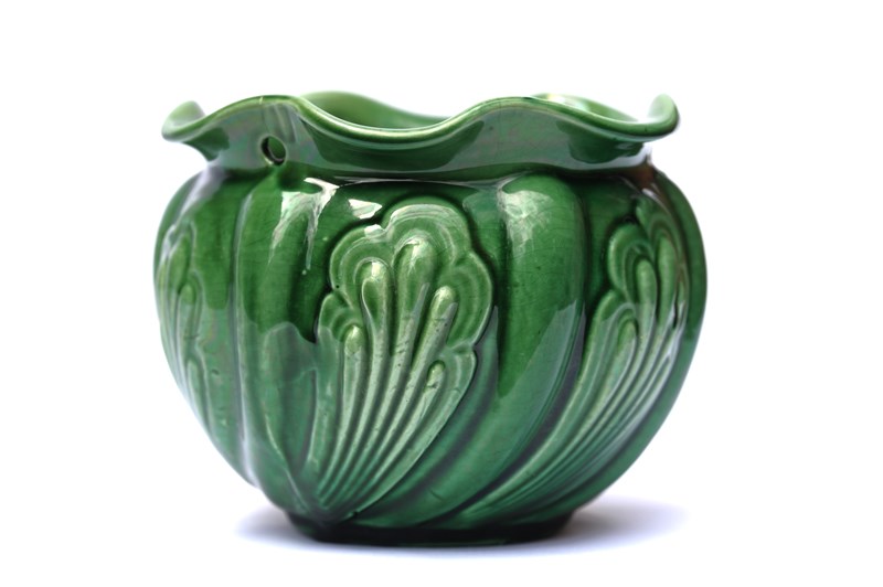 Art Nouveau Planter | Green Jardiniere | Old Houseplant Pot | Antique Pottery