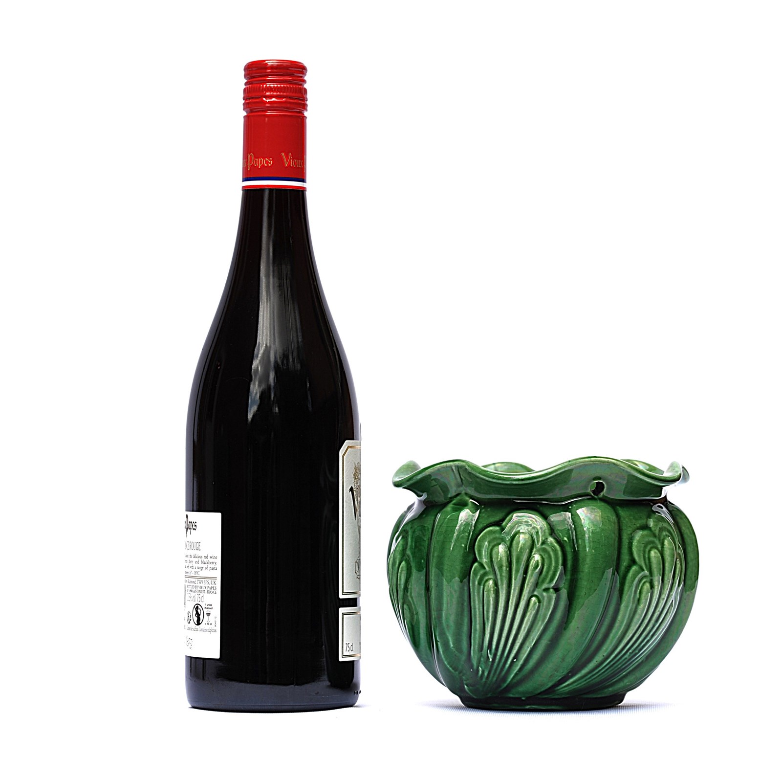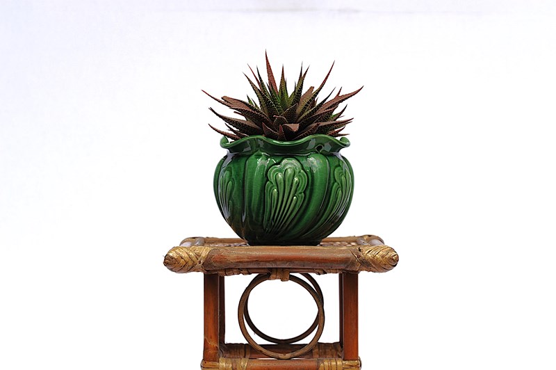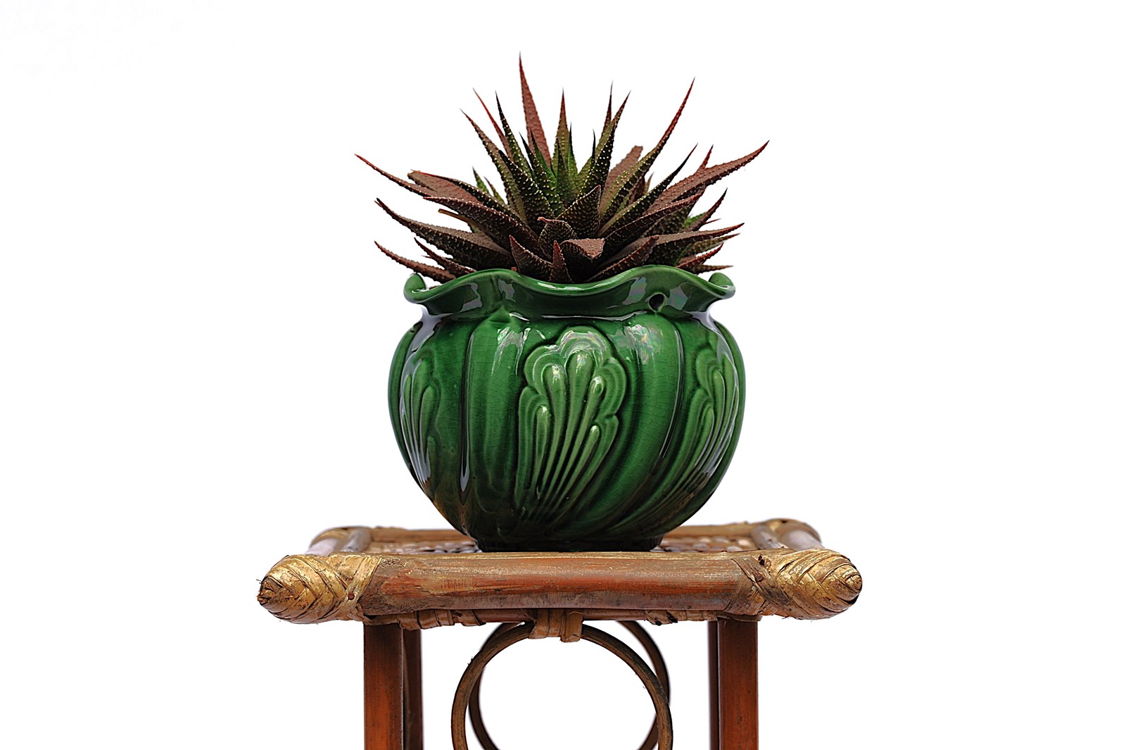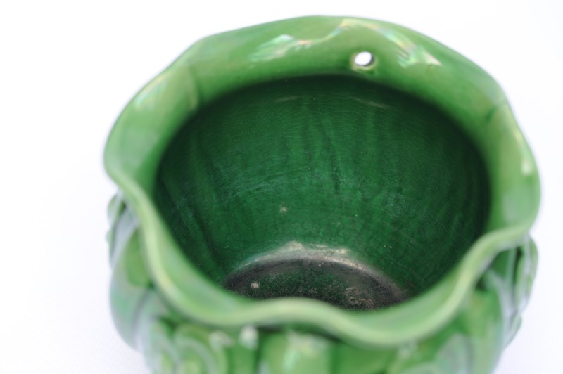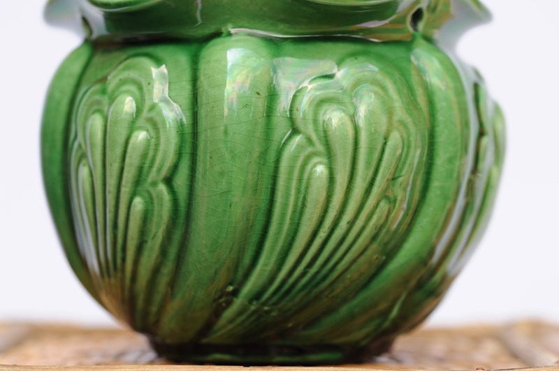 Art Nouveau Planter | Green Jardiniere | Old Houseplant Pot | Antique Pottery