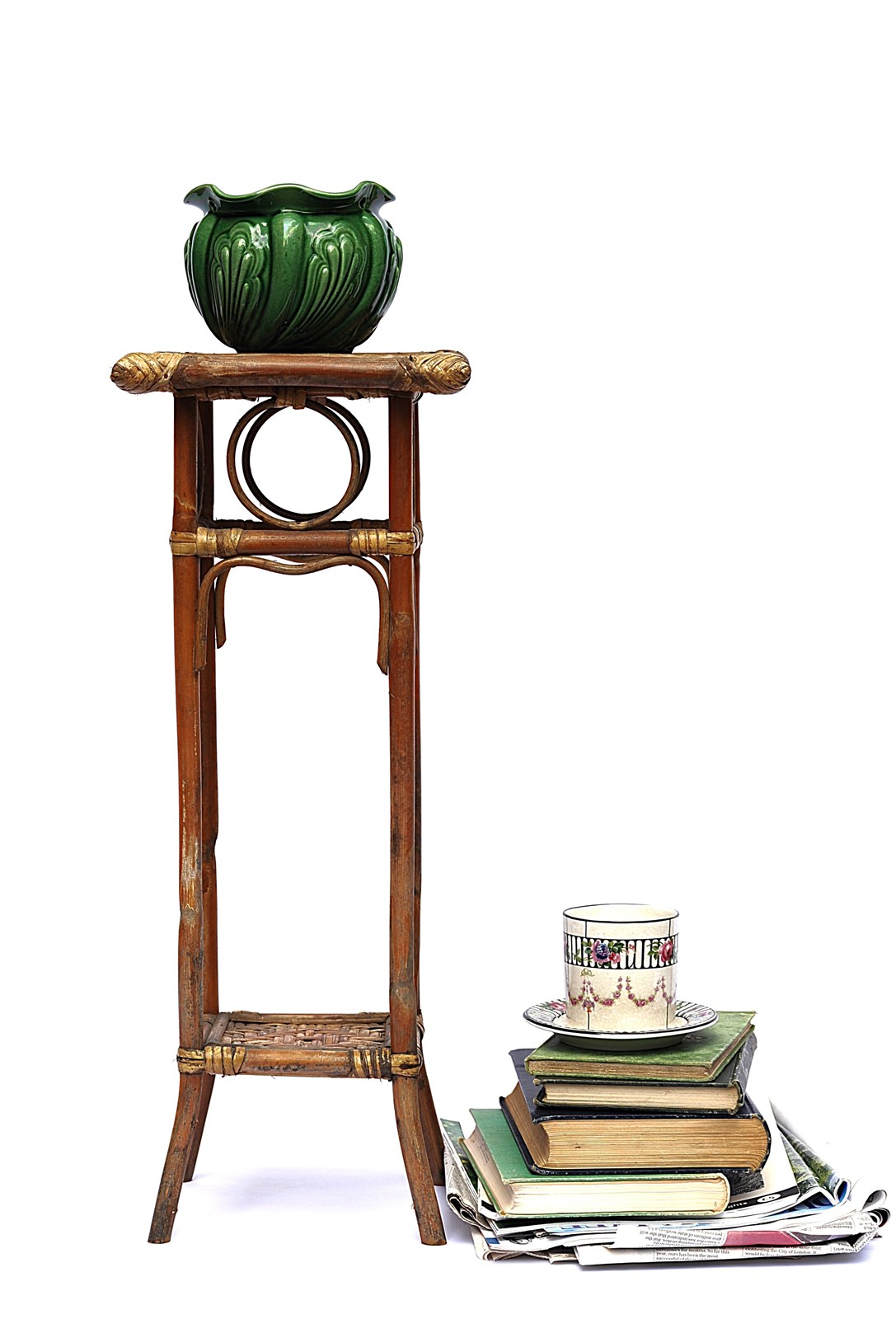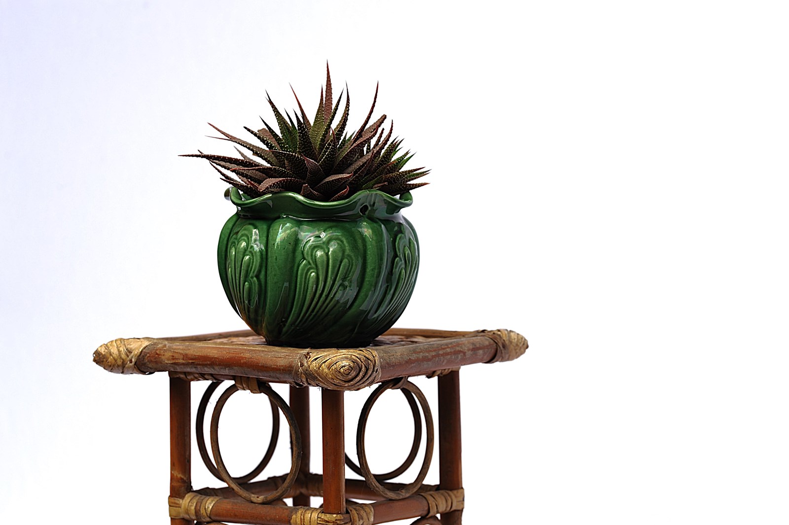 Small Art Nouveau style green pottery indoor planter. Height 4.5 inches. Body diameter 6 inches. Base stand 3 inches diameter. Good overall condition. Free UK inland delivery.