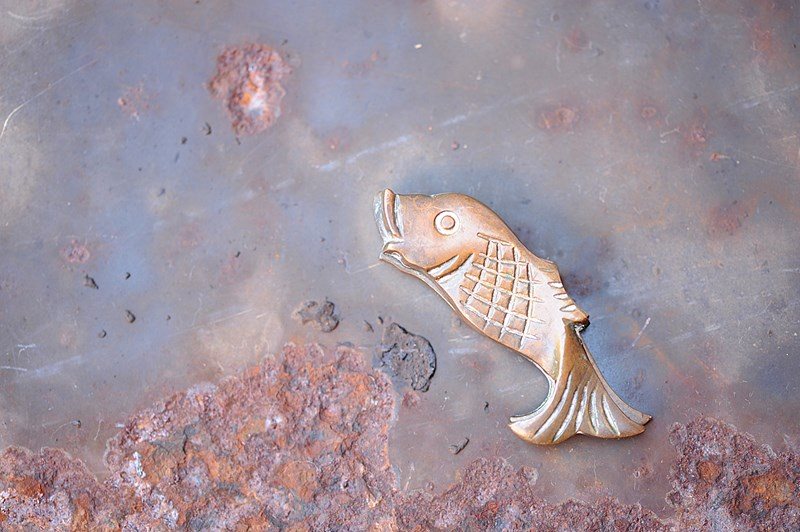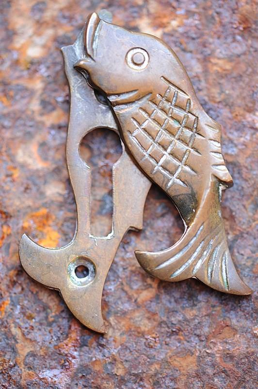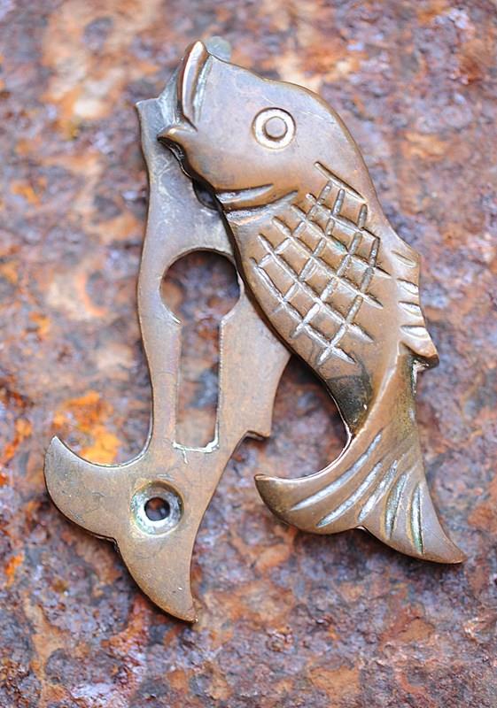 Arts & Crafts Door Escutcheon Antique Brass Fish Keyhole Cover Key Lock Porch