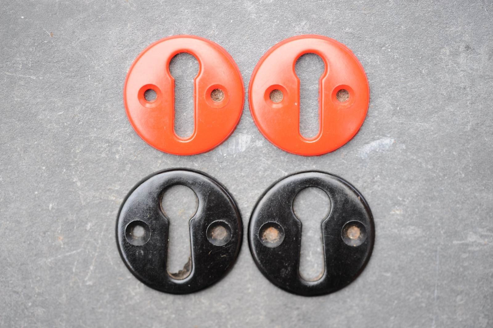 We thought these were unusual to come across? Especially the Red ones. 1930s period Bakelite door escutcheons. Red & Black, new / old stock unused & all are in good condition. Six of each colour currently available. We are selling them individually at £15.00 each + P & P, please just request colour required when enquiring & we will confirm available. We will mark off what is sold as we go along. Flat rate of postage within the United Kingdom of £4.95 no matter how many you have.
